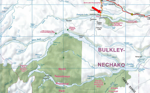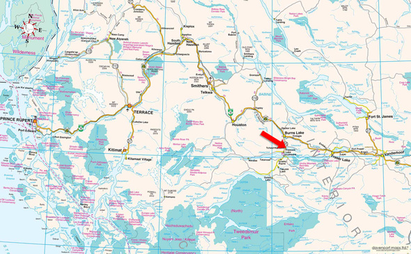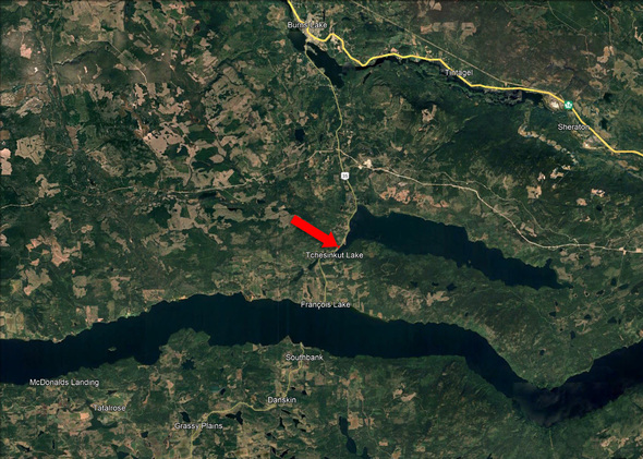 The area around Tchesinkut Lake, located in north-central British Columbia just south of Burns Lake, is part of the stunning Lakes District, known for its pristine wilderness, abundant wildlife, and outdoor recreation. Tchesinkut Lake itself is a long, clear, deep-water lake popular for its excellent fishing, particularly for Char, Kokanee, rainbow trout, and burbot. The lake's name is said to mean “half water, half rock” in the Carrier (Dakelh) language, a reflection of both its depth and clarity.