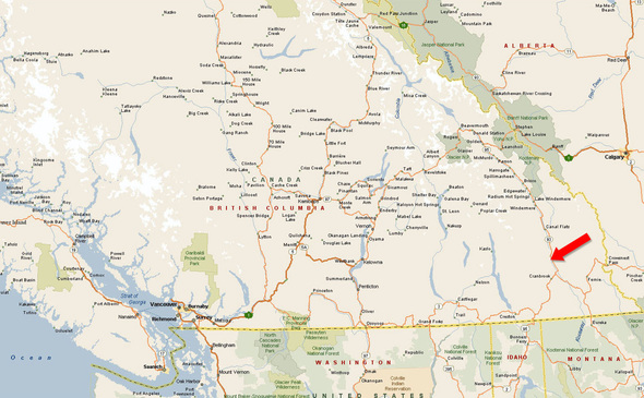 49°46'43.48"N and 115°46'6.79"W