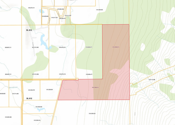 157 acres with water rights (irrigation & stock) & diverse terrain. Small creek runs through. Farm land on west side and hillside backing onto Crown land to the east. Recent logging has improved access with new roads. Building sites offering stunning views. Good water, soil, privacy & climate.
