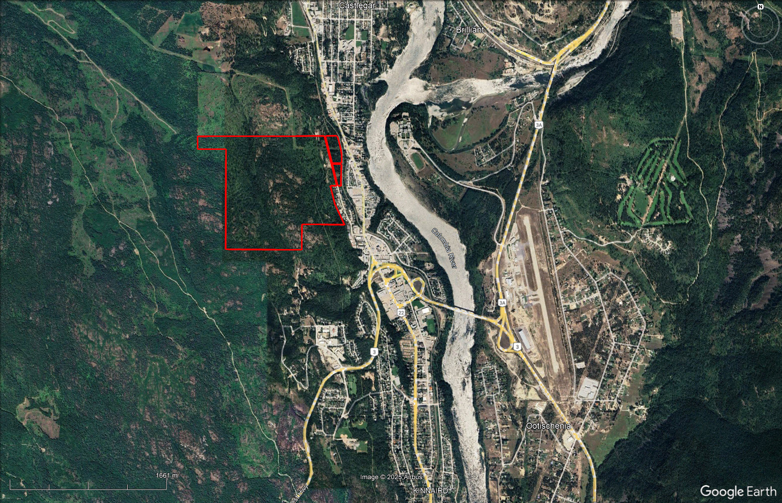 The lower bench that lies on both sides of Woodland Drive is approximately 30 acres. This property is slated for a medium density townhome development where new zoning allows up to 120 units per hector. There is a 32-lot subdivision just to the south of this property with underground servicing. The City of Castlegar would require a development permit and city infrastructure may need to be upgraded to supply water and sewer to the lower bench. The larger portion of this property is to the west of Woodland Drive, with a logging road to the top bench. Approximately 40 level acres are accessible from the top of the road. Access to the balance of the property would require extensive site work and road building. The new zoning would allow 3-acre lots that allows for 3 dwelling units per lot and a multitude of uses. Developer could implement a building scheme to add uniformity to the development and limit some of the uses that are allowed. The location of this property is ideal for homeowners that don't drive, as all amenities are within a few blocks of this property. Plans and topographical mapping are available.