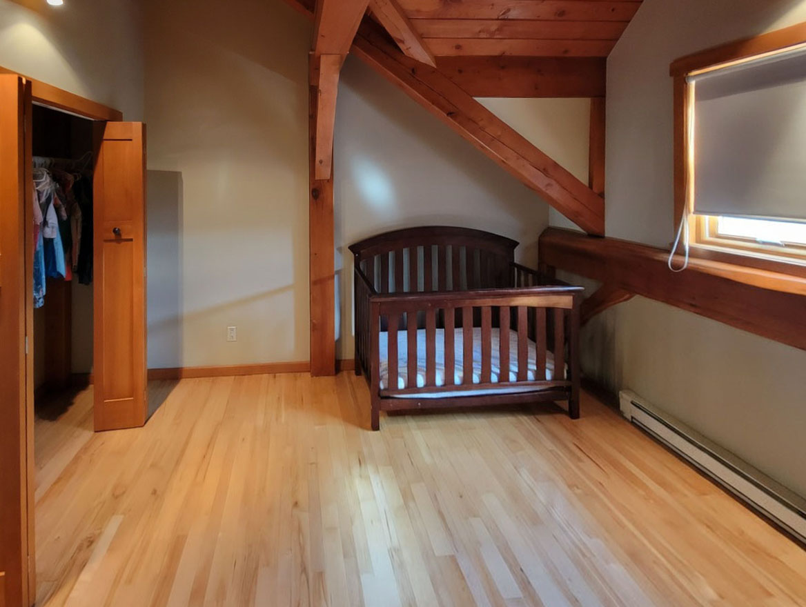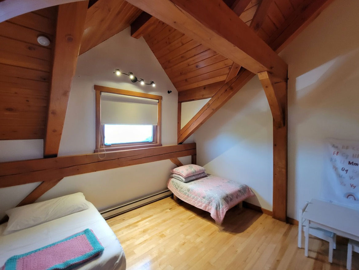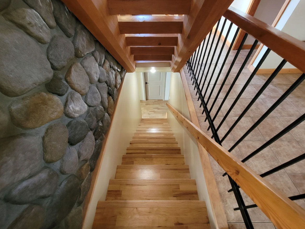 The basement adds two more bedrooms, a walk-out recreation room with wood stove, storage, and a mechanical room, making it genuinely functional space rather than an afterthought. A wrap-around covered deck and second floor balcony round out a home that works as hard as the property it sits on.