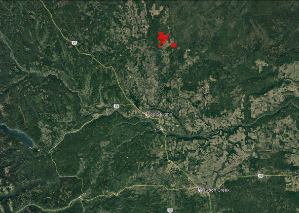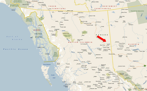 56°44'22.11"N and 120°39'19.09"W