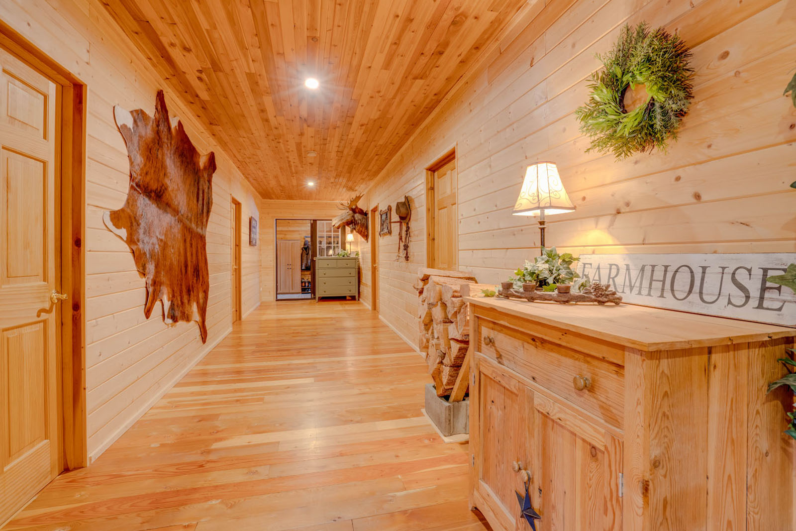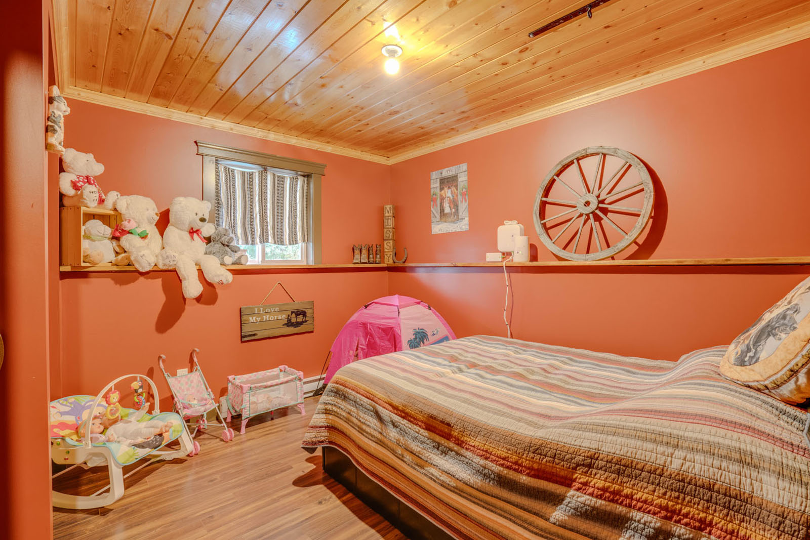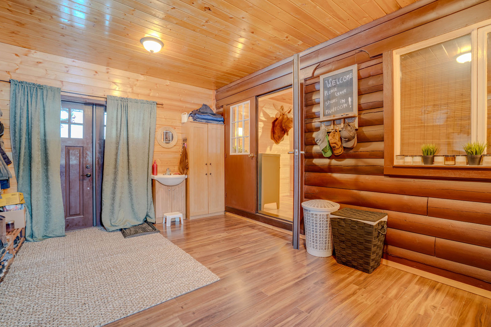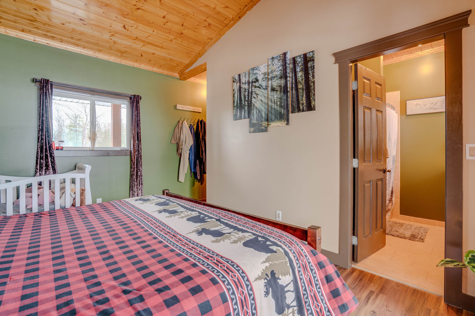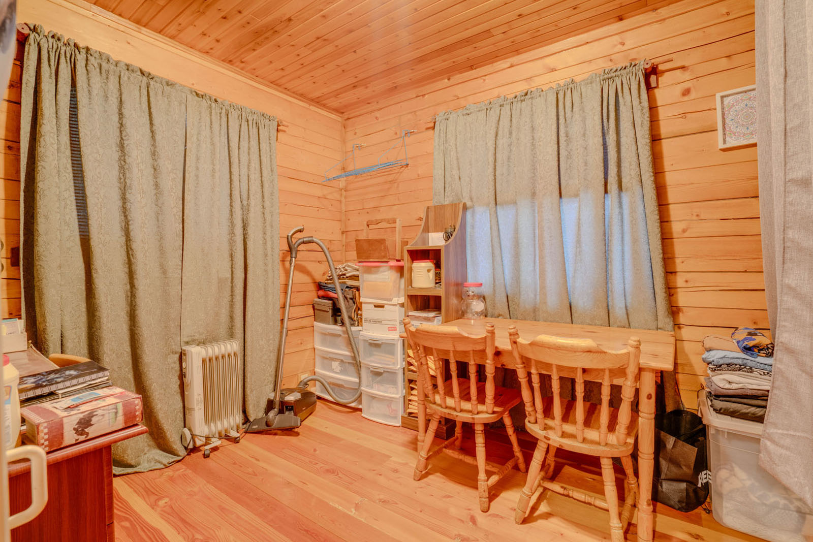 This log house evokes a sense of nostalgia and solid construction, with wood continuing to be the theme throughout this cozy home. Solid cedar lap board finish the ceiling while natural white pine lap board finish the walls. Hardy fir floors have gracefully maintained their beauty and integrity.