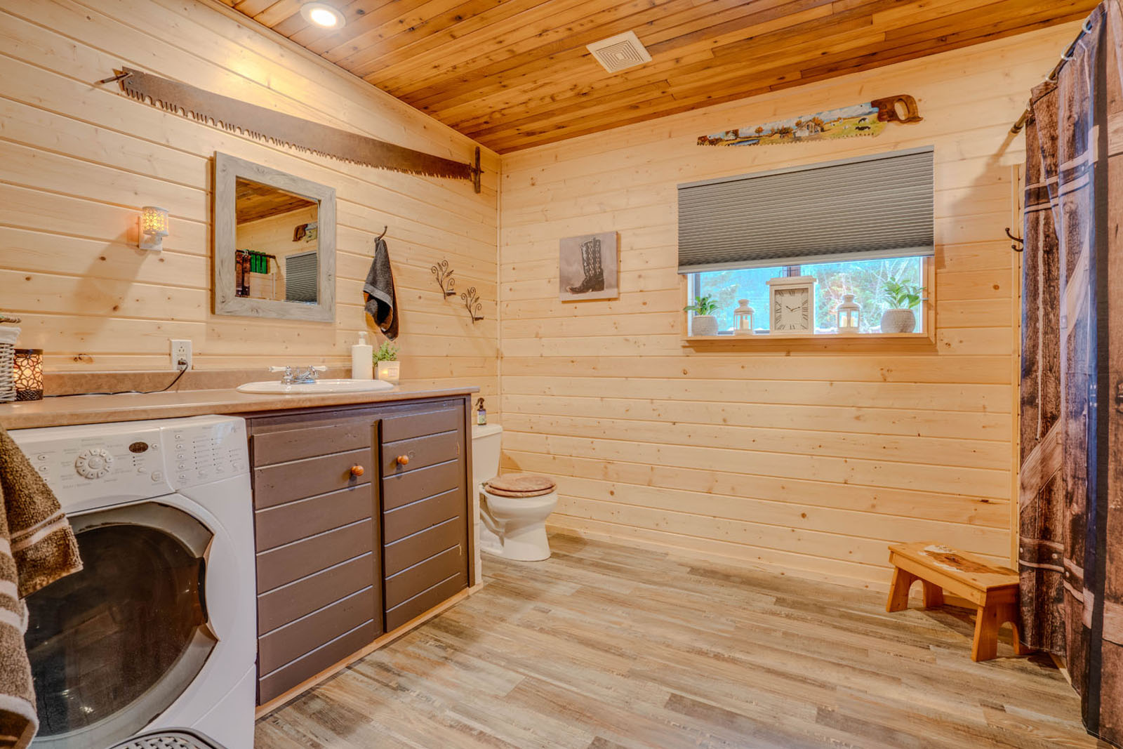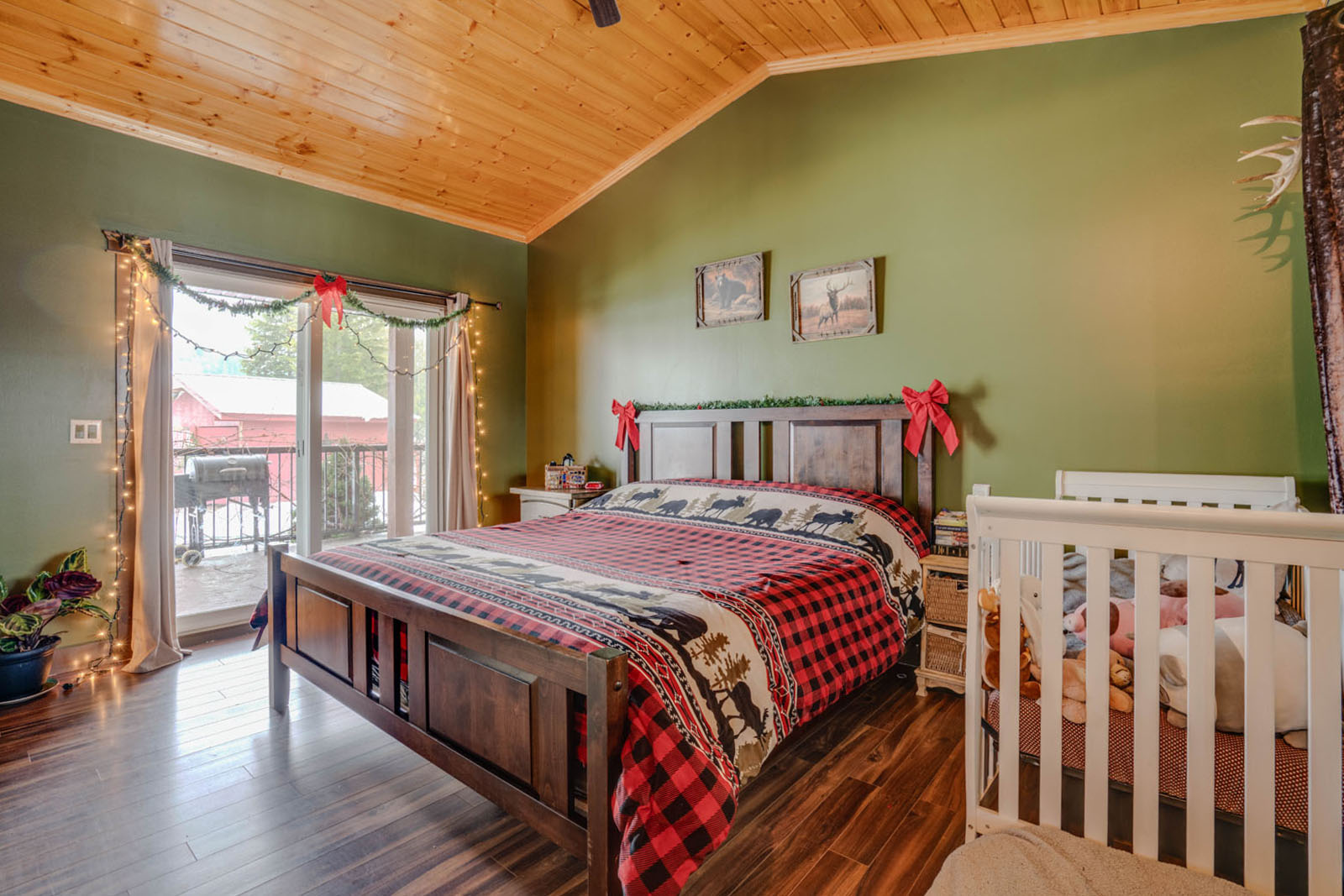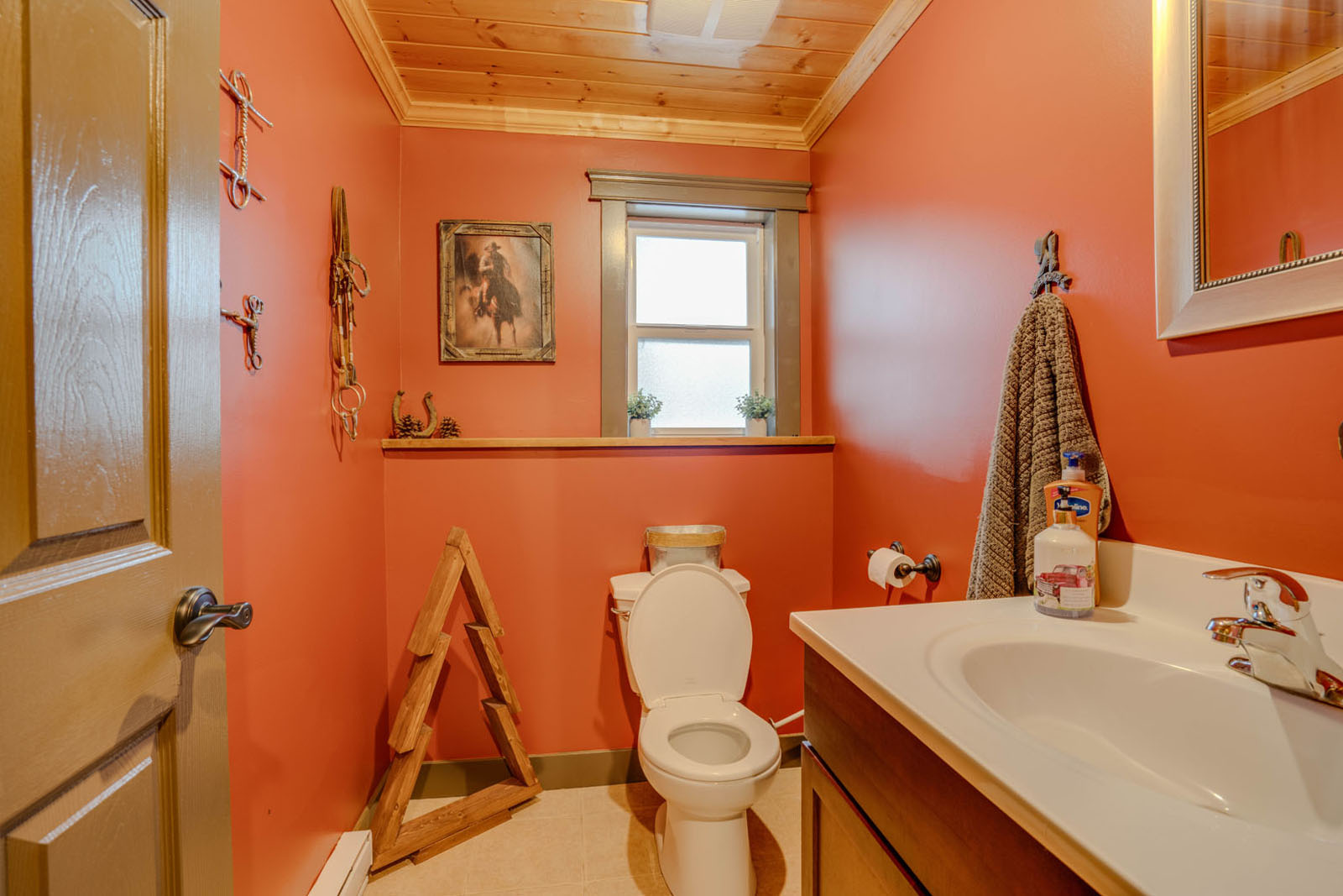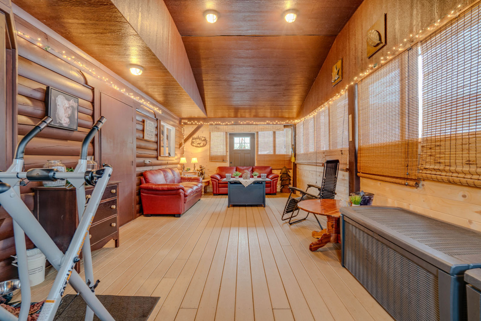 This log house evokes a sense of nostalgia and solid construction, with wood continuing to be the theme throughout this cozy home. Solid cedar lap board finish the ceiling while natural white pine lap board finish the walls. Hardy fir floors have gracefully maintained their beauty and integrity.