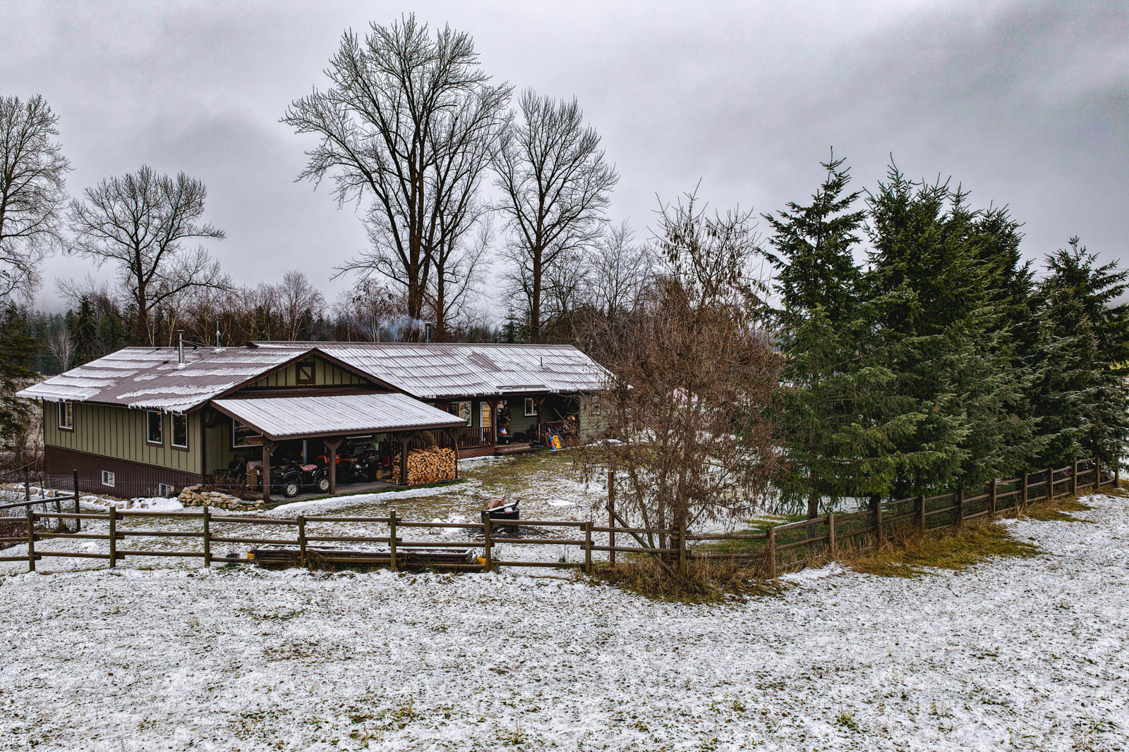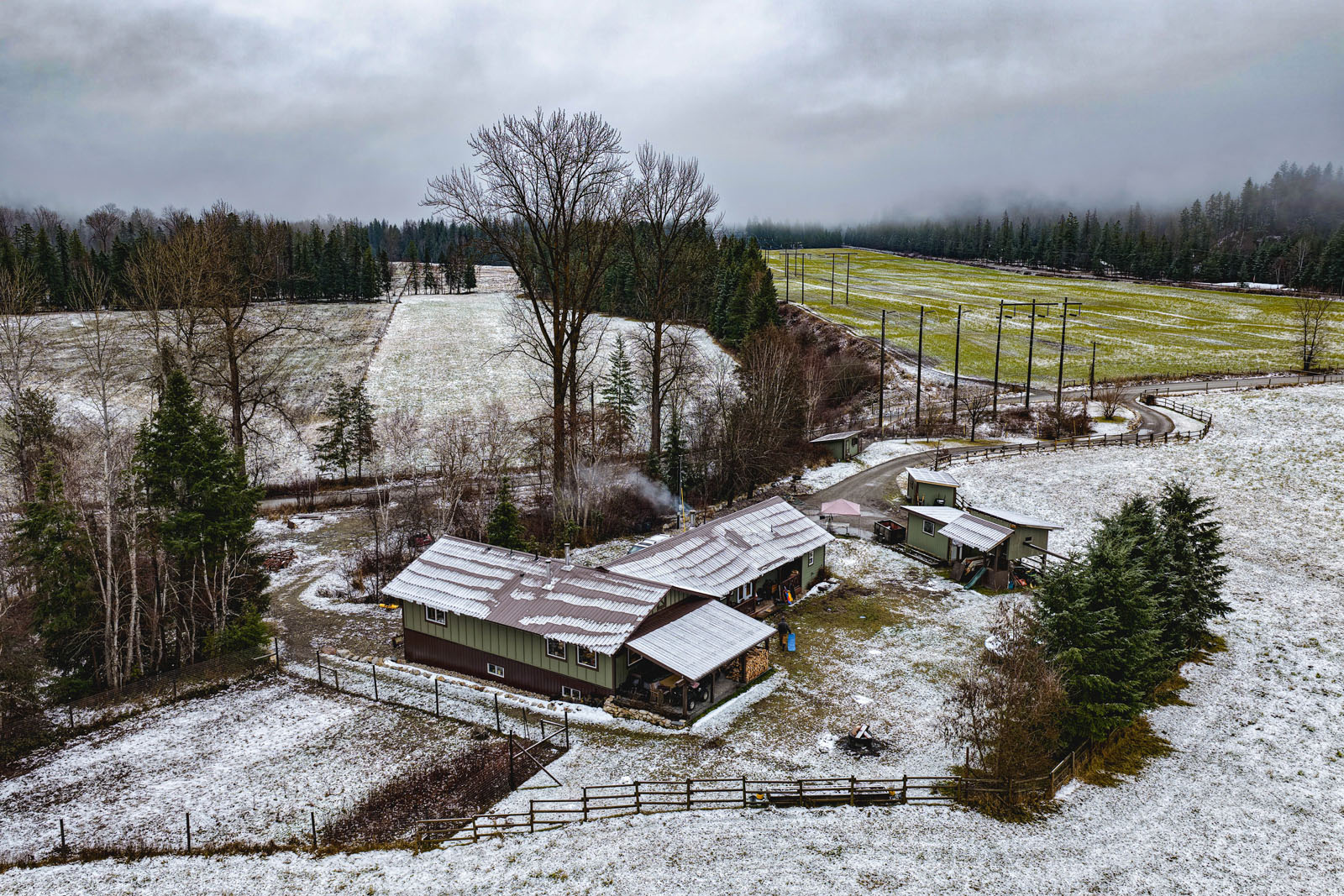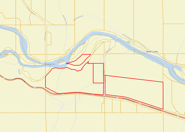 The Highway 6 frontage portion of the property is home to the two-storey main residence and the core agricultural infrastructure. A second log home residence is located further back on the property, offering privacy and separation from the highway frontage. Combined, these improvements create a highly functional secondary living area suitable for extended family, guests, or supplemental residential use.