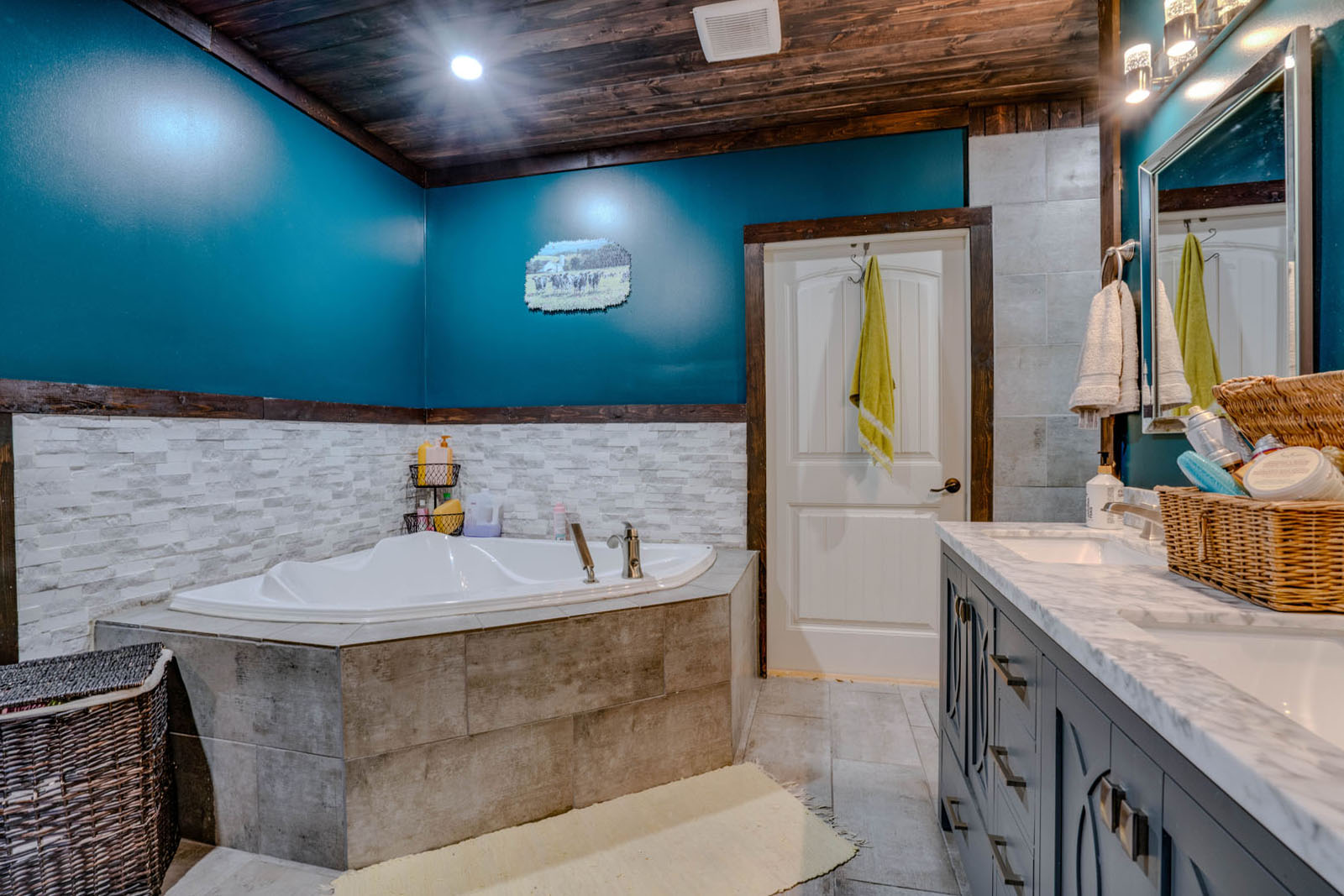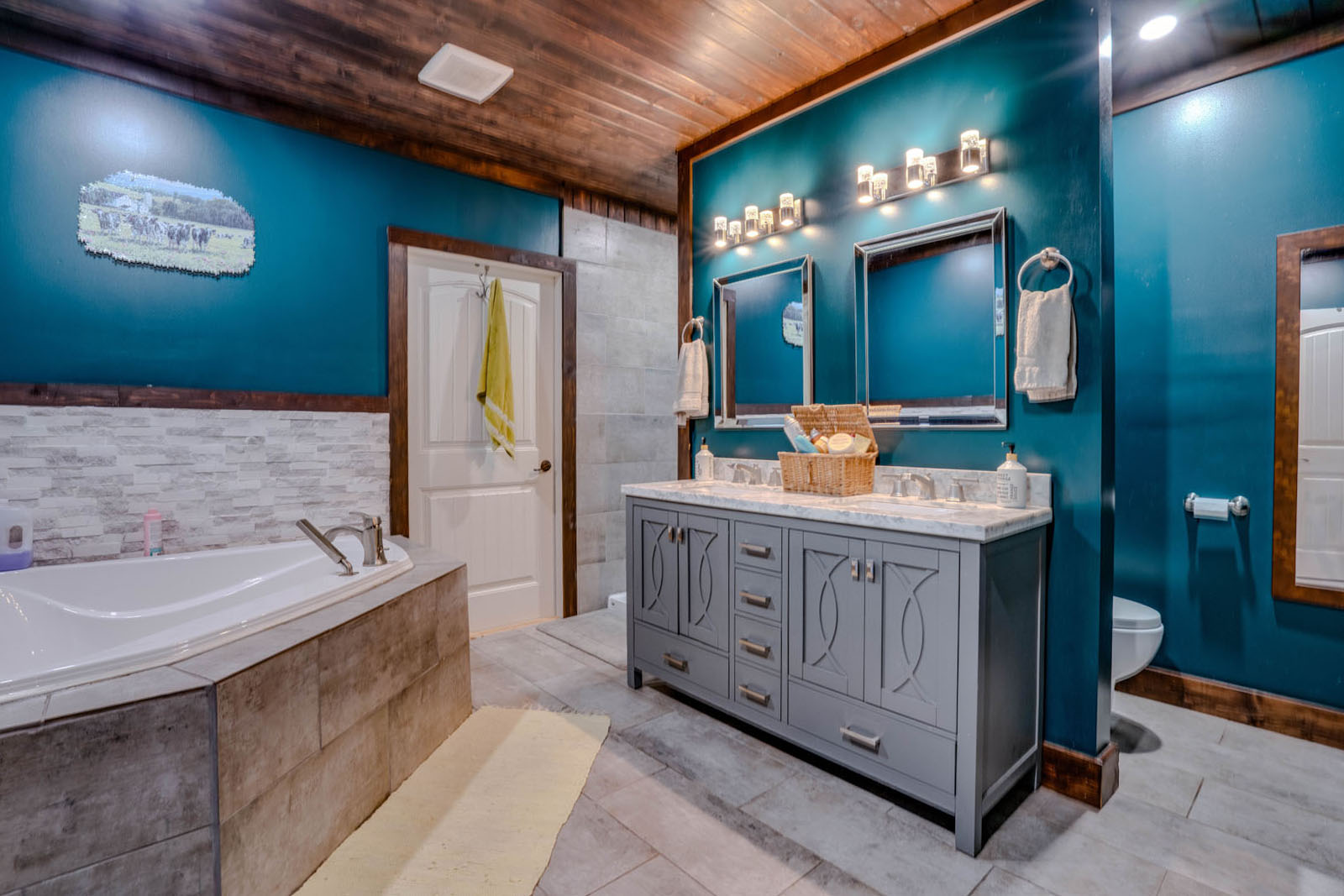 In this generous space, the primary bedroom easily accommodates a king-size bed and a seating area. Stepping into the dual-entry en suite, you're greeted by a luxurious soaker tub surrounded by elegant white tiles. The spacious walk-in shower and dual his-and-her wash basins provide practicality, while a semiprivate toilet ensures privacy. Two other bedrooms and an additional full bathroom, pantry, and laundry room complete this main level.