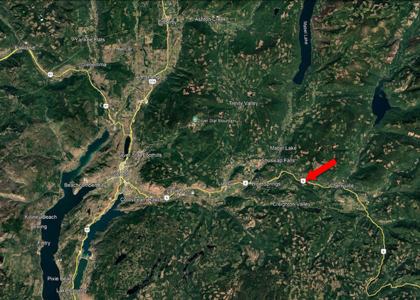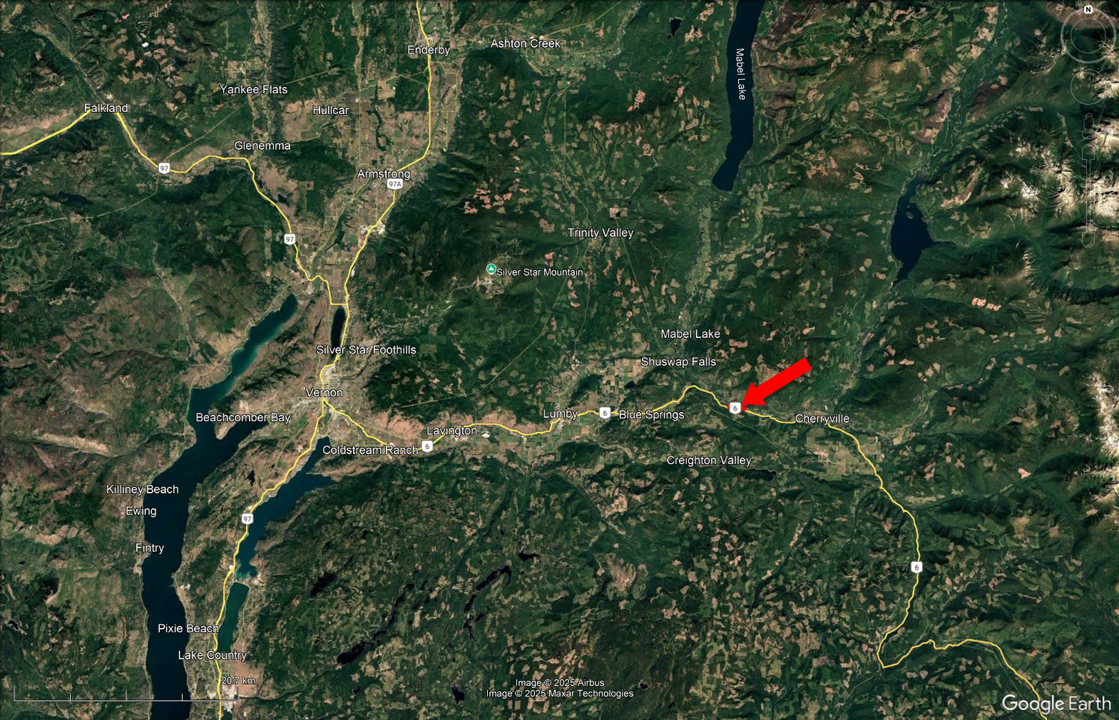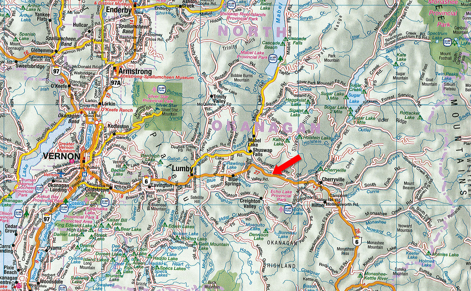 From Lumby, travel east 18 kilometers on Highway 6. The property is on your left.