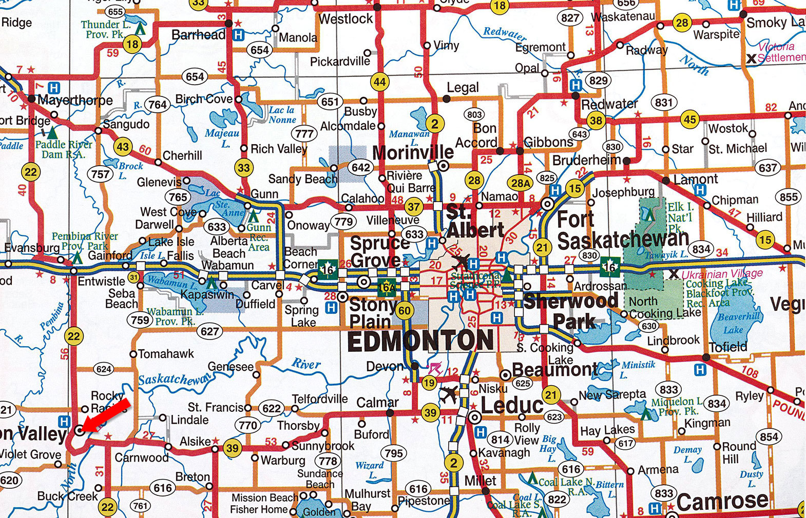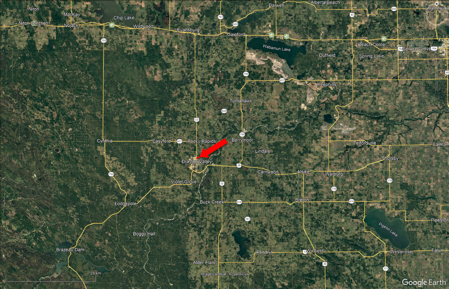 Drayton Valley is a town in central Alberta, located approximately 133 kilometres southwest of Edmonton along Highway 22, the Cowboy Trail. Nestled between the North Saskatchewan River and the Pembina River and surrounded by the vast oil fields of Brazeau County, the town has evolved from a quiet farming and logging community into a thriving regional centre since the oil boom of the early 1950s. Today, Drayton Valley has a population of approximately 8,000 residents and has been among the fastest growing communities in Alberta over the past five years.