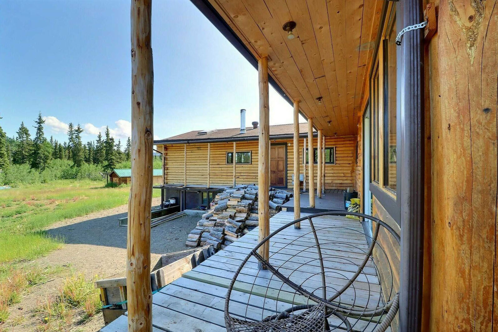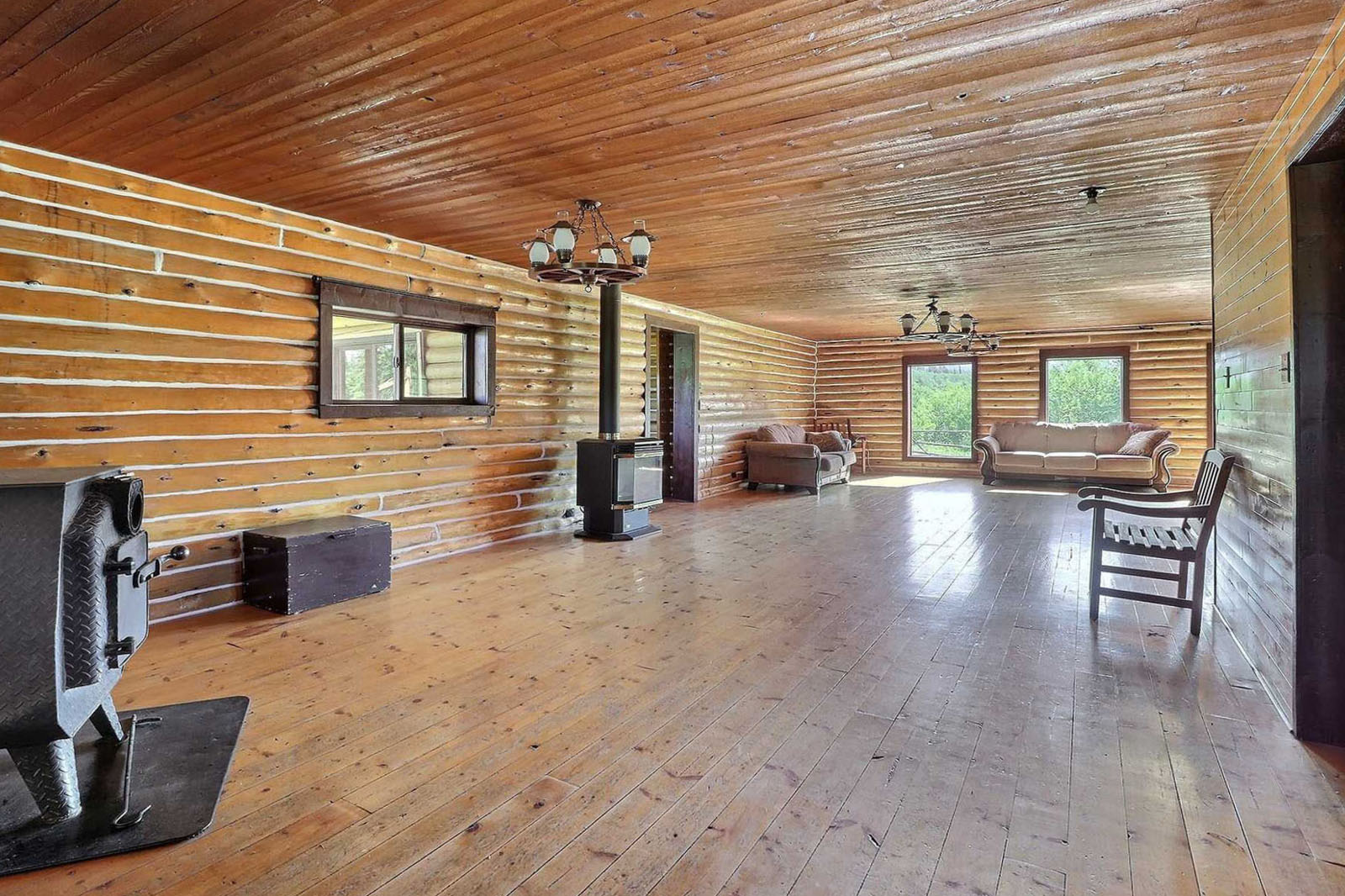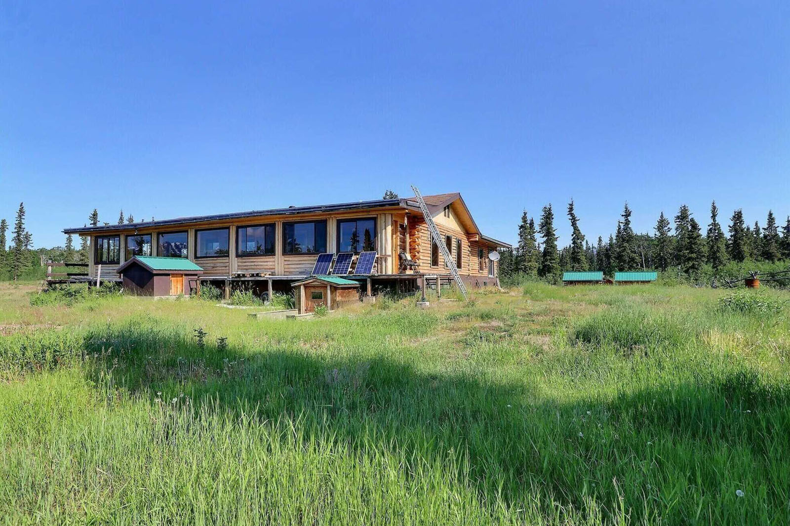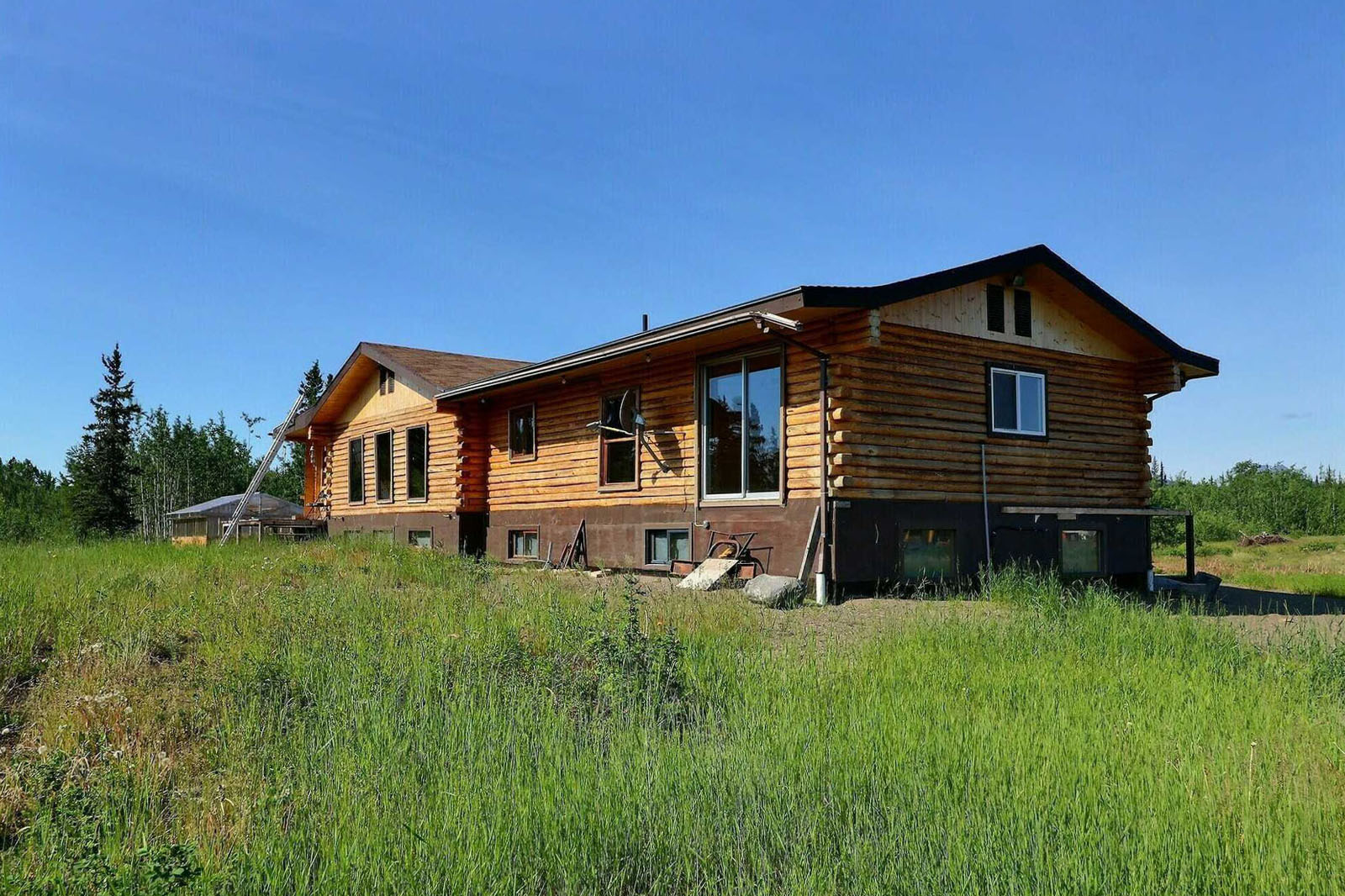 Spacious log home on 35-acres with a private lake at your doorstep, 20' x 28' greenhouse, large garden area, 80 ft well, septic system, 22 kW 4-cylinder Lister generator for off-grid power. Includes a 220-acre grazing licence for livestock. Sustainable homestead or private wilderness retreat.