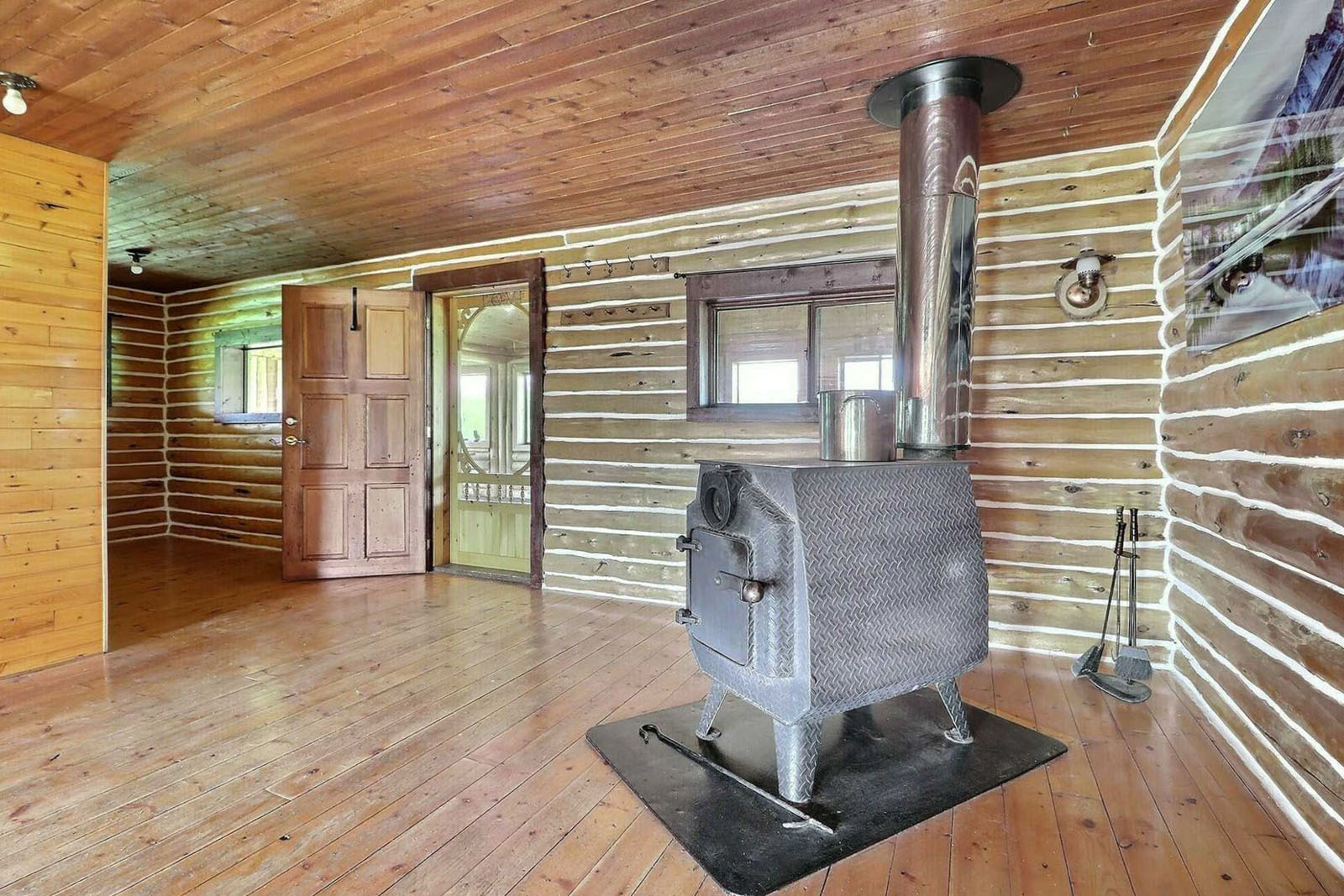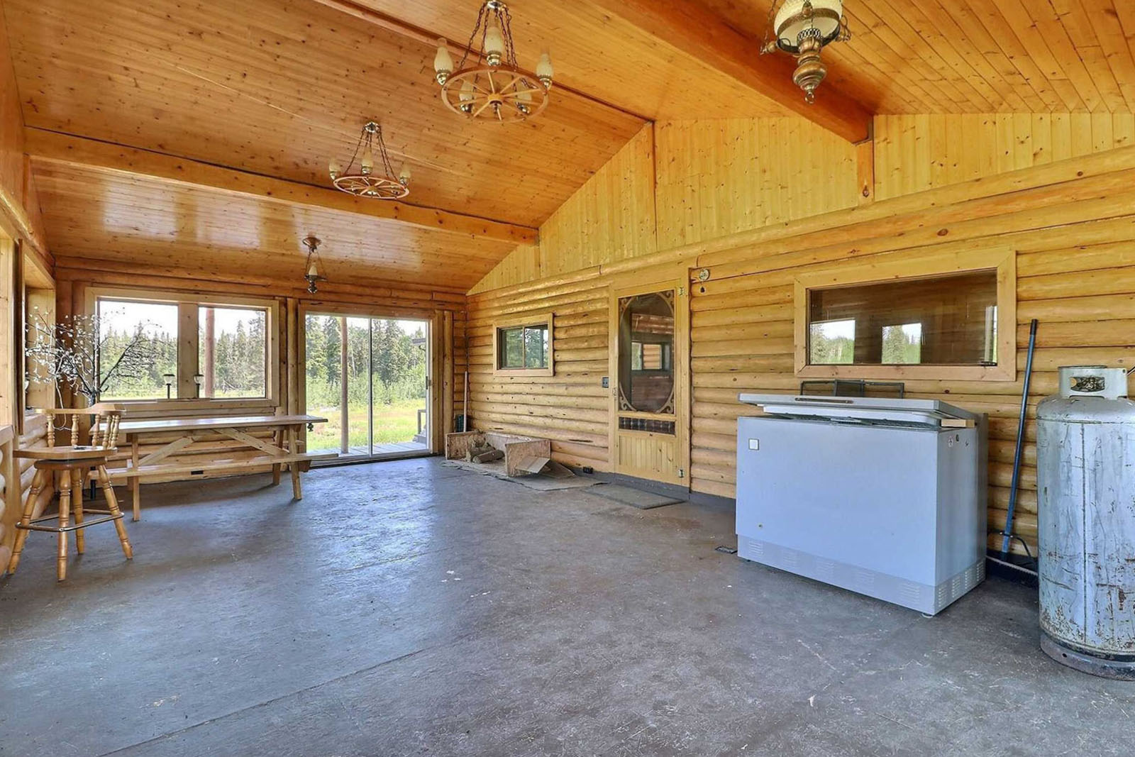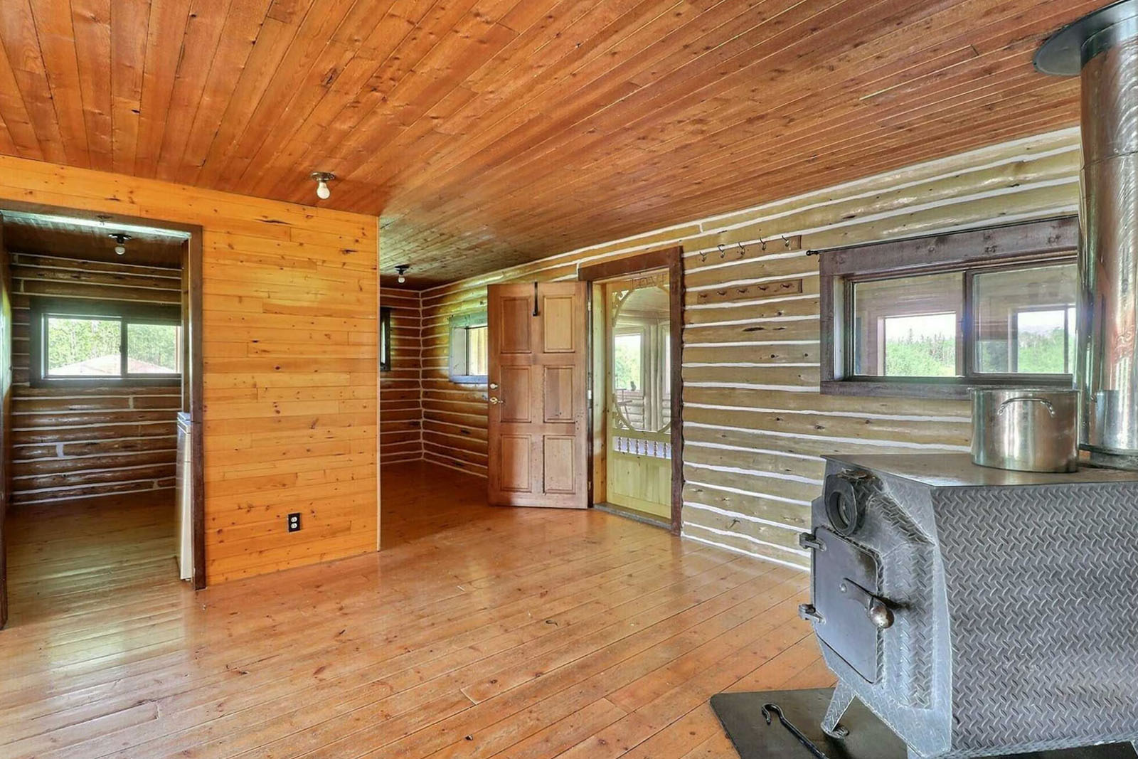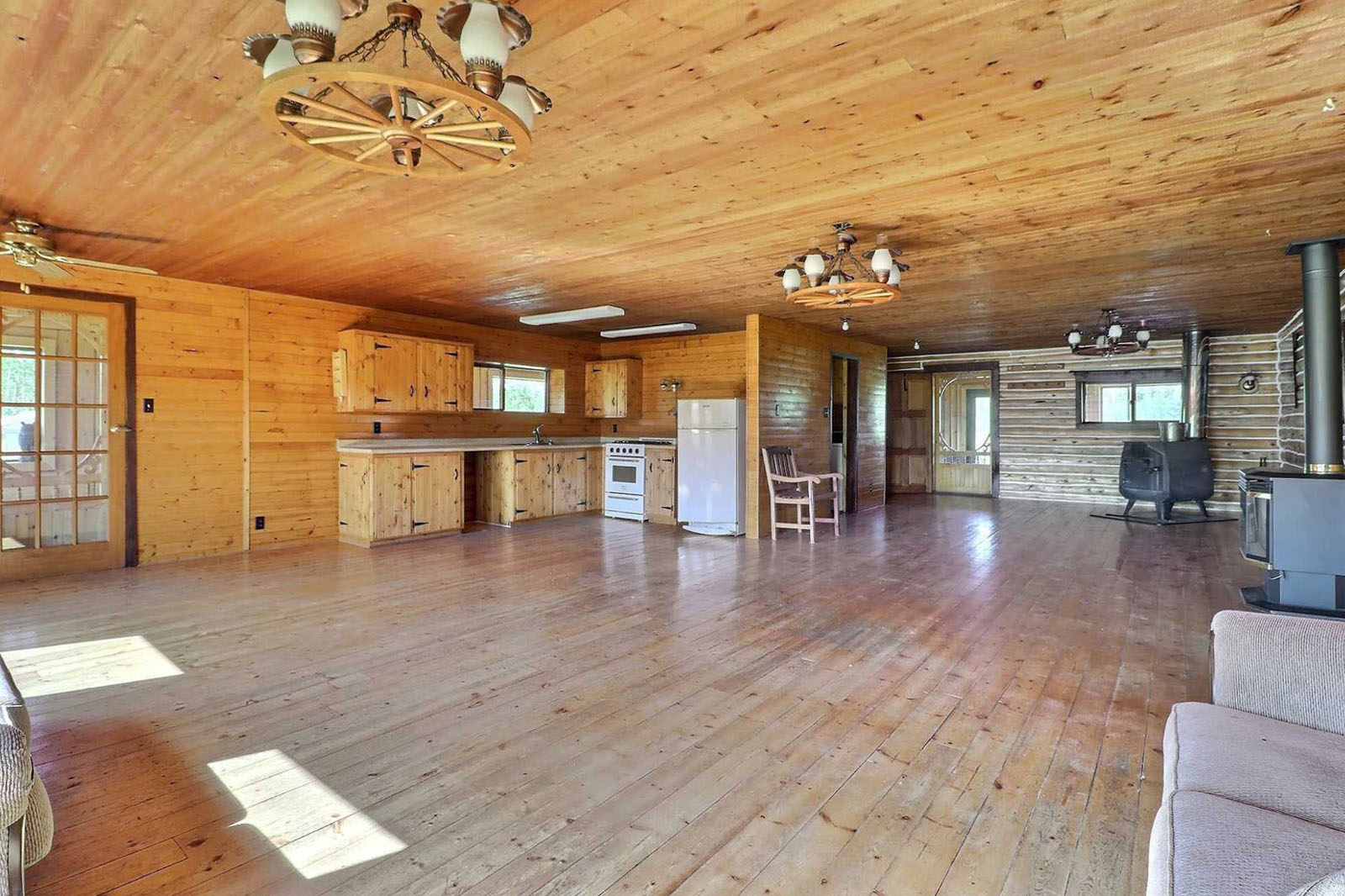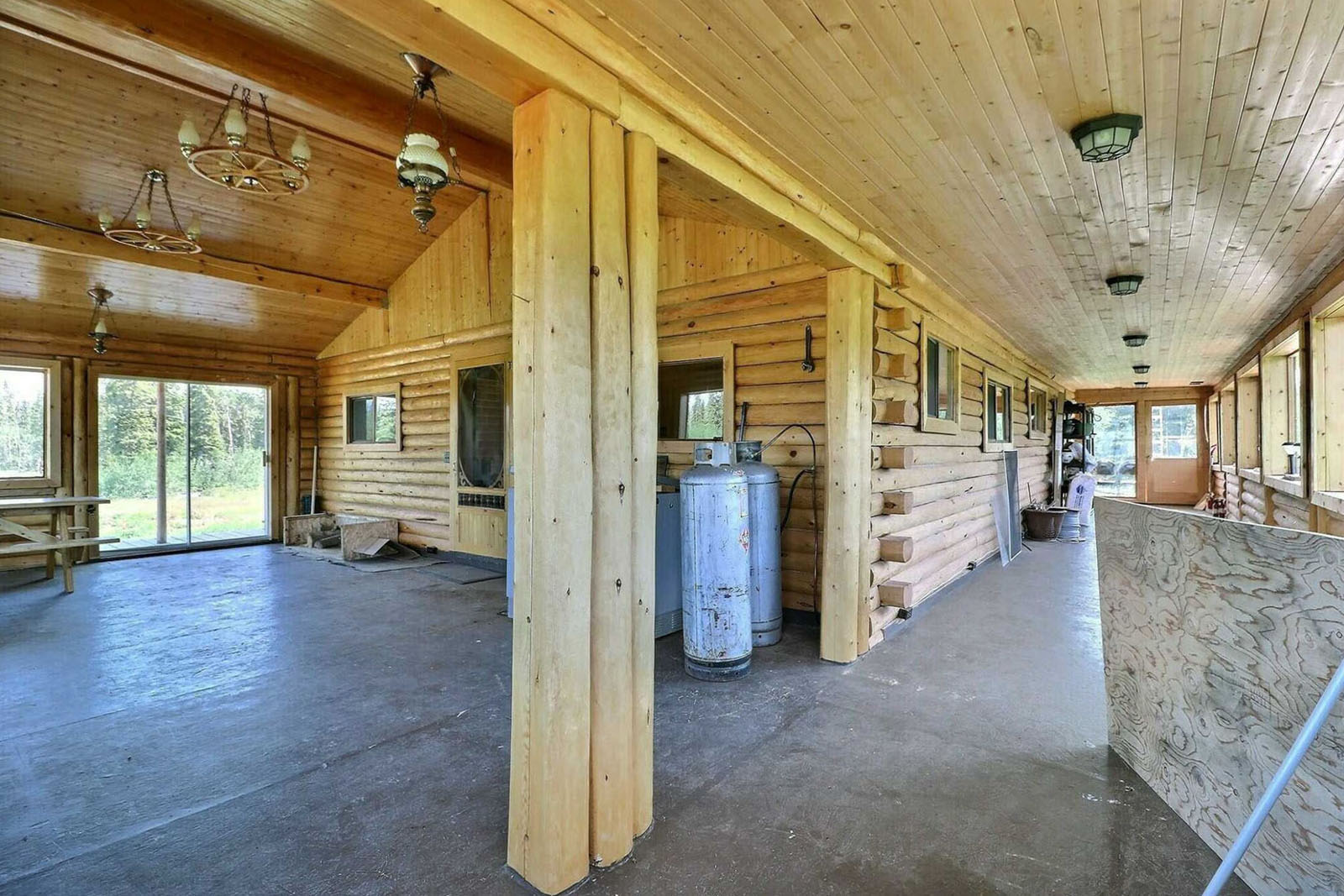 Spacious log home on 35-acres with a private lake at your doorstep, 20' x 28' greenhouse, large garden area, 80 ft well, septic system, 22 kW 4-cylinder Lister generator for off-grid power. Includes a 220-acre grazing licence for livestock. Sustainable homestead or private wilderness retreat.