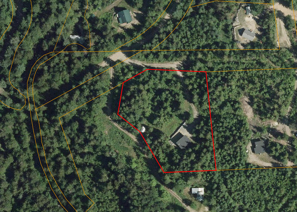 Modern cabin on a flat, elevated bench framed with a natural rock wall. 1,200± sq. ft. with 2 bedrooms + den, open-concept living space, a full bath, utility room & foyer/mudroom. Off-grid setup includes solar, in-slab radiant heat, a drilled well & septic system. Minutes from lake access.