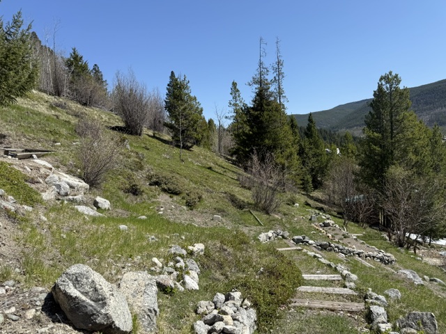 The meadow areas surrounding the lake are scattered with wildflowers and grasses, particularly in the spring and summer months. Species like lupine, Indian paintbrush, arrow-leaf balsamroot, and bluebell can be seen adding vibrant color to the landscape.