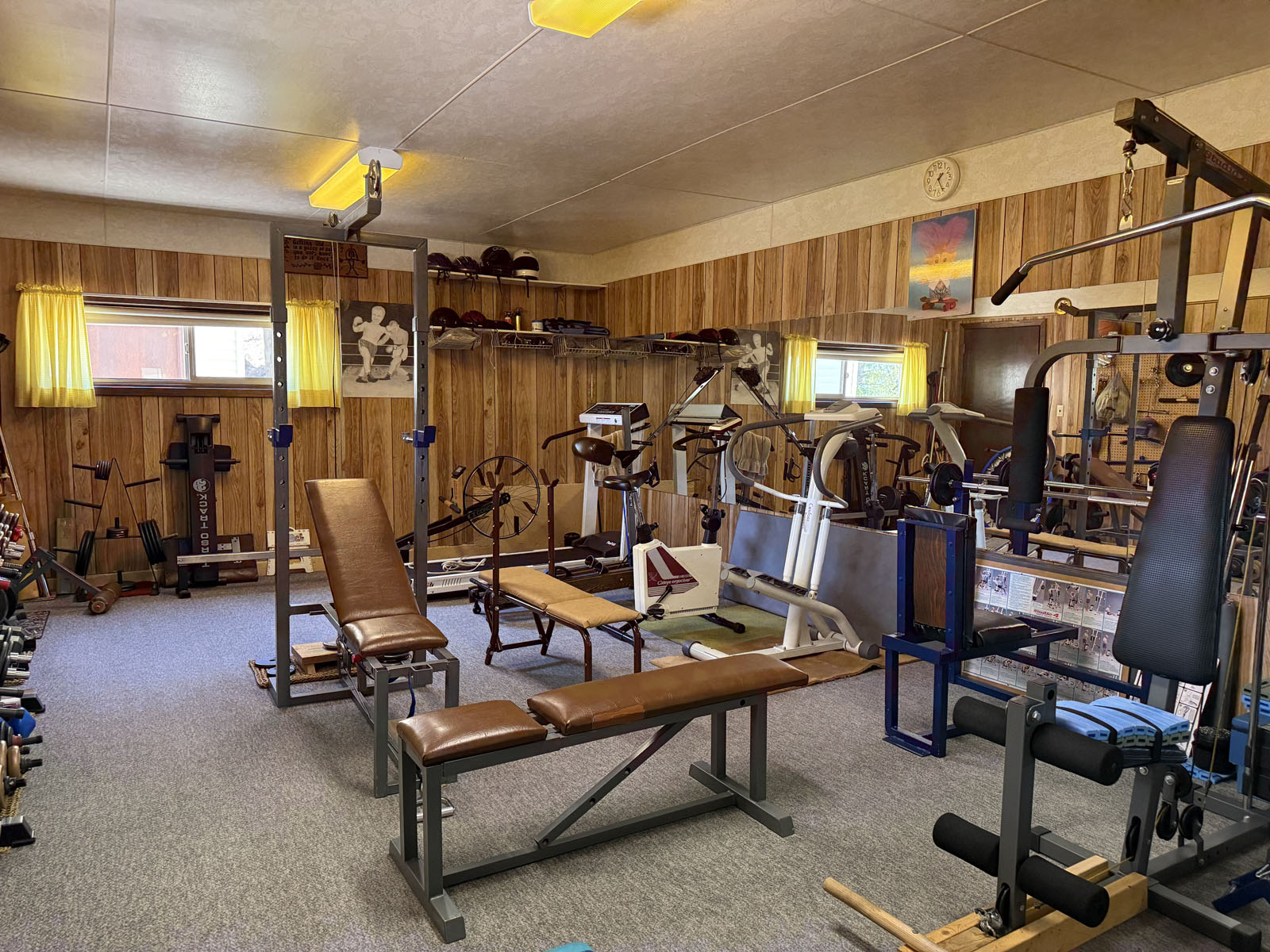 The walk-out basement is designed for maximum functionality and versatility. A fully equipped gym provides the perfect space to stay active, and all gym equipment can stay with the home, while the large workshop area is ideal for hobbyists or anyone needing extra storage and workspace. Whether you enjoy working on DIY projects, woodwork, or simply need a place to store your outdoor gear, this basement area will meet your needs.