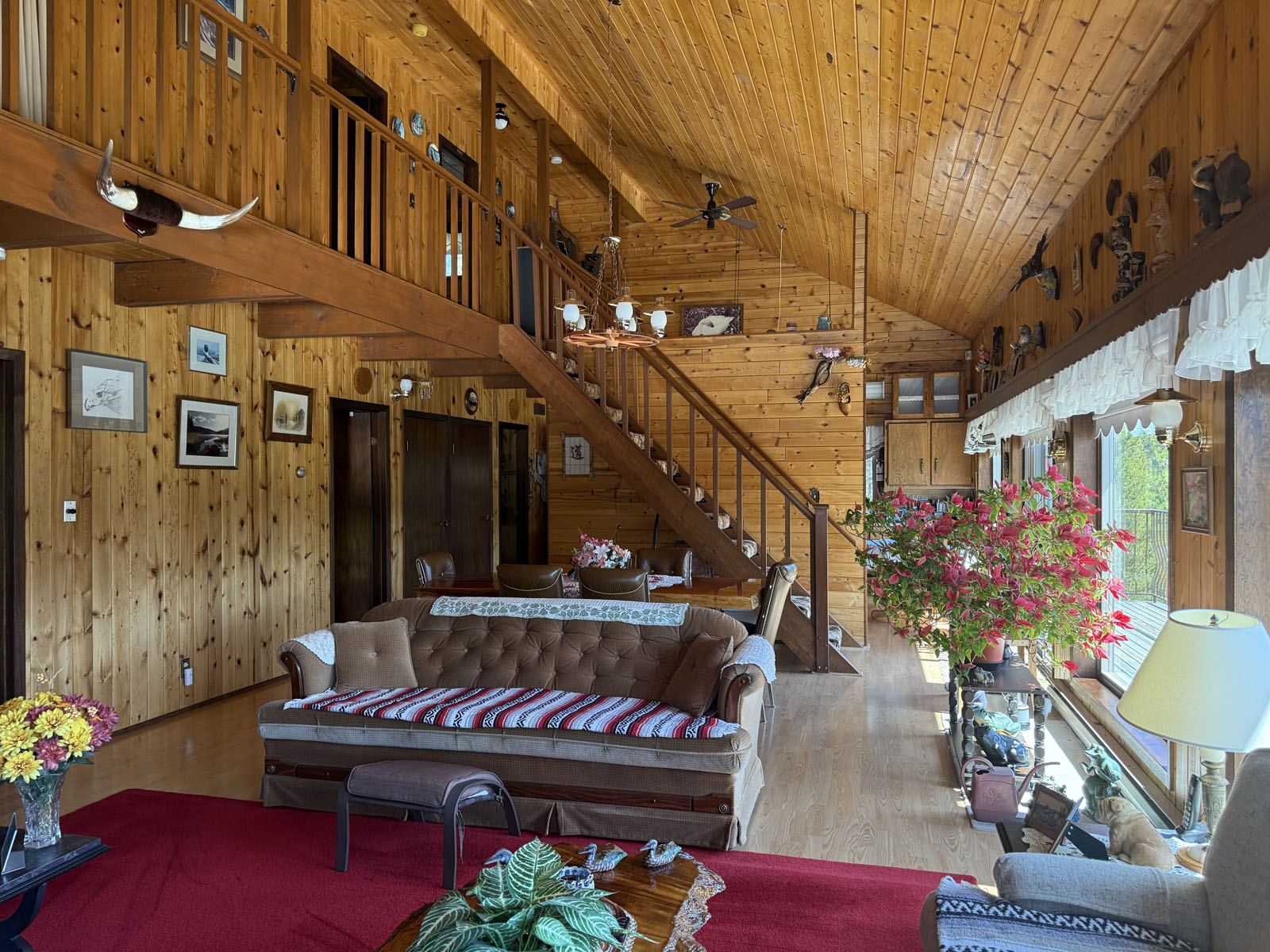 The property’s terraced lot offers an abundance of space and a variety of outdoor amenities. There is ample parking for vehicles, guests, and recreational vehicles. The lot is also equipped with two gravity-fed wells, ensuring a plentiful supply of water. Several garden spaces offer potential for growing your own fruits, vegetables, and flowers, and the greenhouse and root cellar provide excellent options for preserving your harvests and enjoying fresh produce year-round.