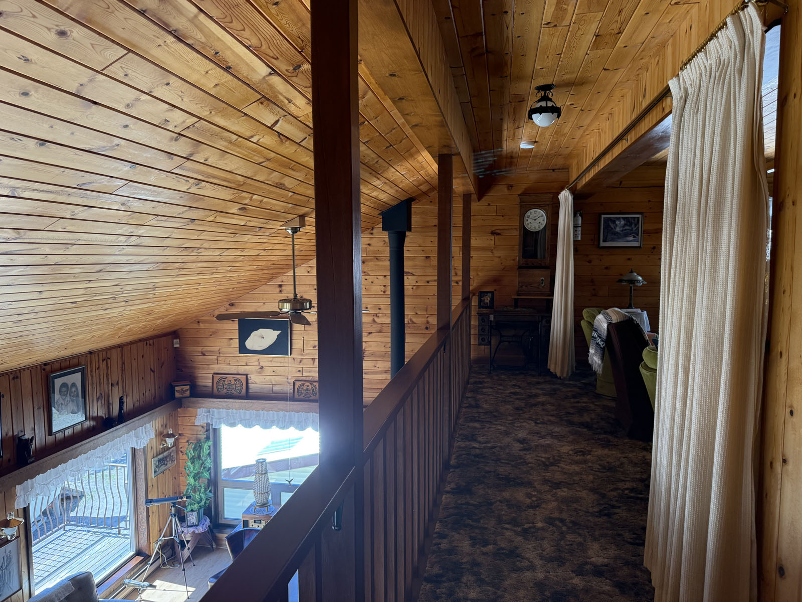 The spacious main level of the home was designed with family living and entertainment in mind. The kitchen is both stylish and functional, with a cozy seating area perfect for casual meals or morning coffee. The open-concept dining and living areas are light-filled and inviting, thanks to a large wall of windows that brings the spectacular views of Osprey Lake right into your living space. The central wood stove adds a rustic charm and warmth to the home, perfect for cozying up on cooler nights. A generous primary bedroom provides a private retreat, with a huge 5-piece bath, ensuring relaxation and comfort. The main floor also features a laundry/utility room and a UV purification system.