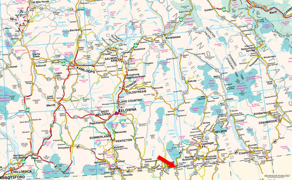 Christina Lake is located about half way between the West Coast and Alberta in beautiful Boundary Country, just east of junction of Highway 395 and Highway 3 (Crows nest). Spokane, WA is a 2.5-hour drive from the lake on Highway 395 and Calgary and Vancouver are 8 and 7 hours by car respectively. Castlegar Airport is a 45-minute drive east.