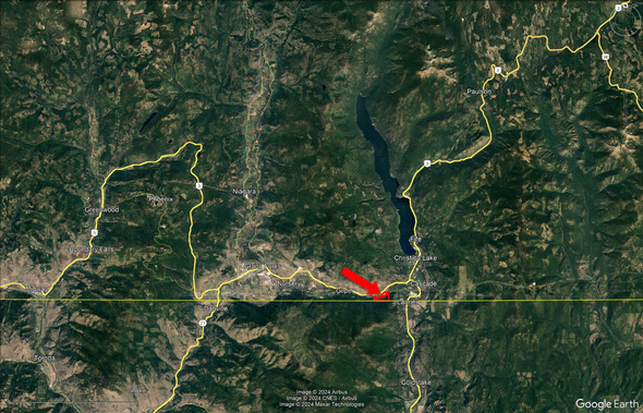 Take Highway 395 north to the Canadian border (approx. 2.5 hours). Continue on 395 until it meets Highway 3. Turn right on Highway 3 and go just about 3 miles to Christina Lake. Call listing representative for detailed directions to the property.