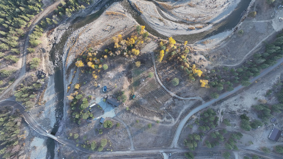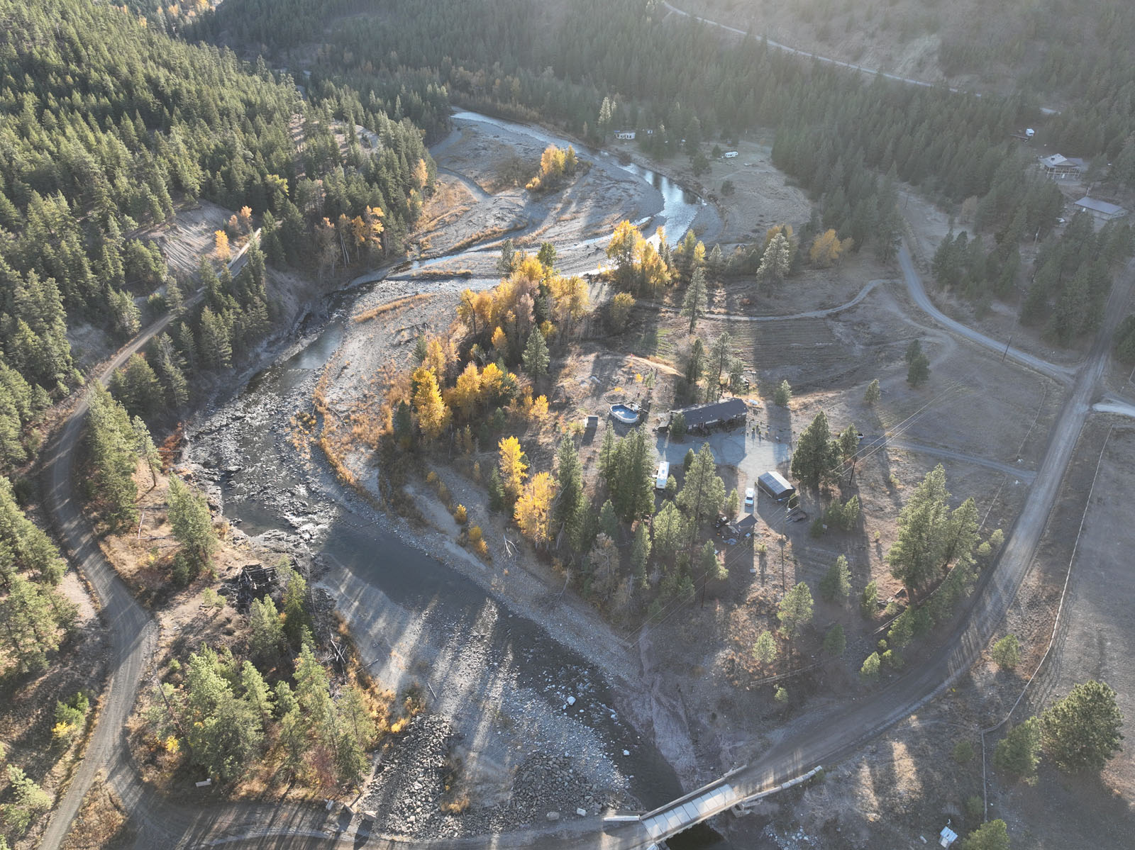 Picture waking up to endless blue skies, golden grasslands swaying in the breeze, and the gentle sound of Spius Creek flowing nearby. The landscape feels like something out of a western painting—rolling meadows sprinkled with Ponderosa pine and Douglas fir, soft sandy creekbanks perfect for morning coffee strolls, and distant hills that glow amber at sunset. It’s quiet, it’s private, and it’s absolutely stunning.