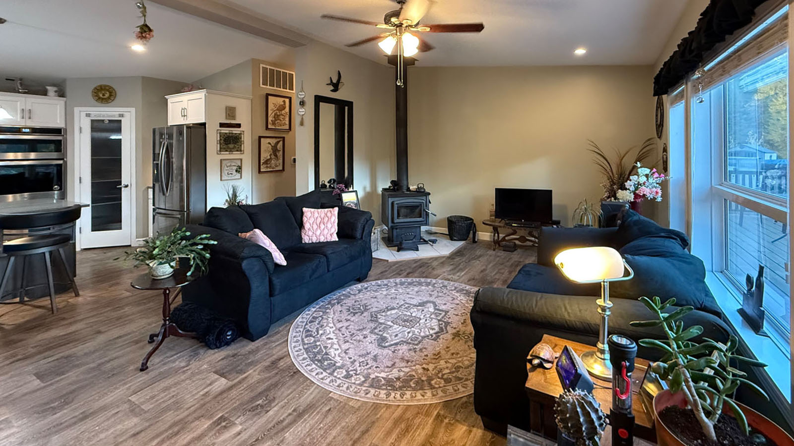 Built in 2021, this home is still under warranty, offering peace of mind and the benefits of modern efficiency, including superior insulation, a heat pump with propane backup, and a cozy wood stove for those crisp evenings. Large windows capture endless light and picturesque views, while the open layout enhances the sense of space throughout.