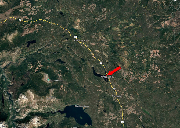 Vegetation around Nimpo Lake is dominated by mixed forests of lodgepole pine, spruce, and fir, with stands of aspen and birch in lower and wetter areas.