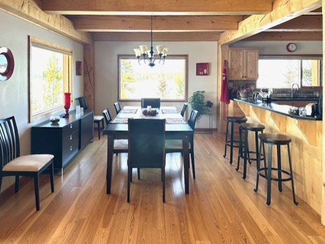 The property is just off of Highway 20 and a short 15-minute drive to the Anahim Lake Airport. The property has both wood and in-floor and wall radiant heating, an inground well, cell service and fibre-optic high-speed Internet.