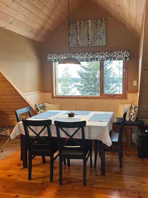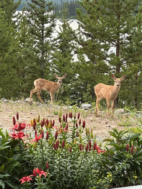 The house is regularly visited by a doe who has two fawns most years. There is a family of foxes on the property, and they provide a great deal of entertainment. An otter den on the inlet is the site of hilarious antics visible from the house, and a beaver lodge on the other side of the peninsula is the source of visitors. One of the large pines in front of the house is the regular hang-out for a bald eagle. The lake has annual visits from pelicans, swans, ducks, and Canada geese, and the bird-feeders attract a great variety of colourful avians, including orioles, red-wing blackbirds, jays, humming birds and finches.