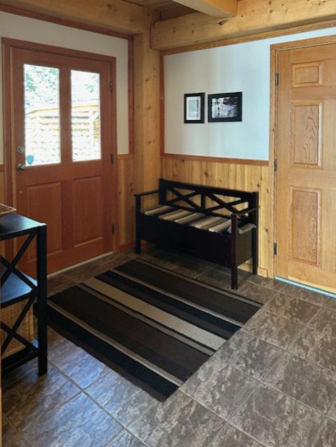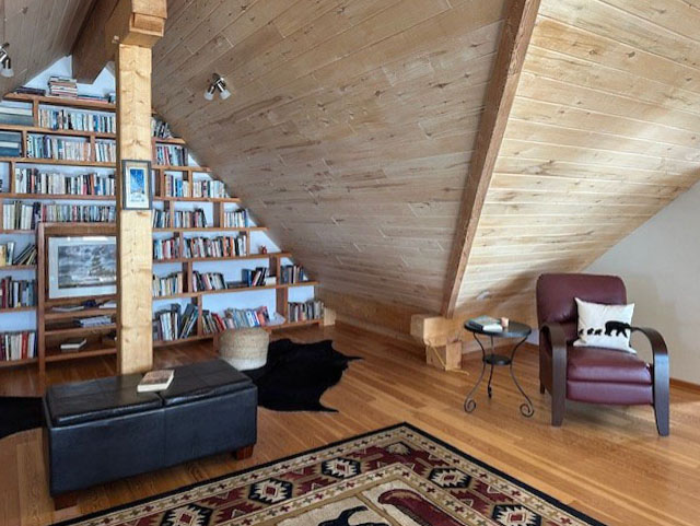 Upstairs the mezzanine has a large library with room for relaxing with a book, listening to music or working on a puzzle. There are three bedrooms off of the library as well as a spacious 3-piece bathroom with walk-in glass shower.