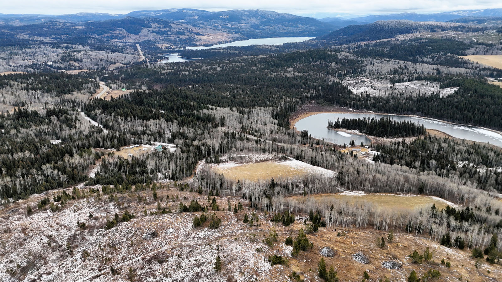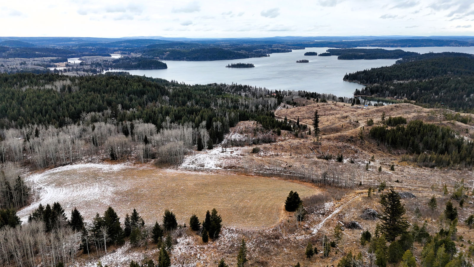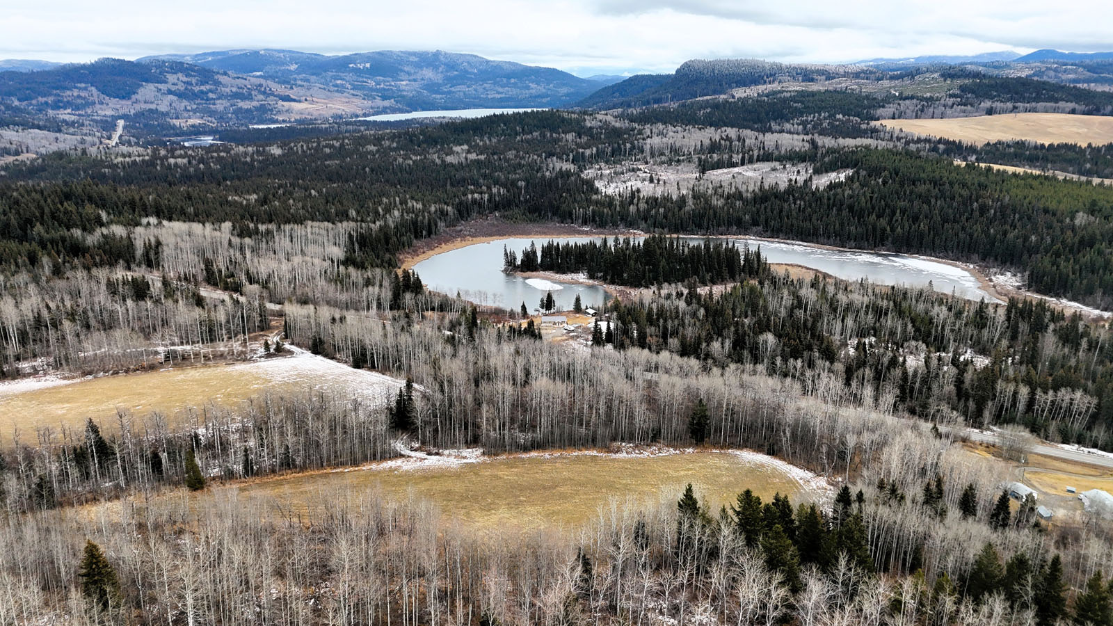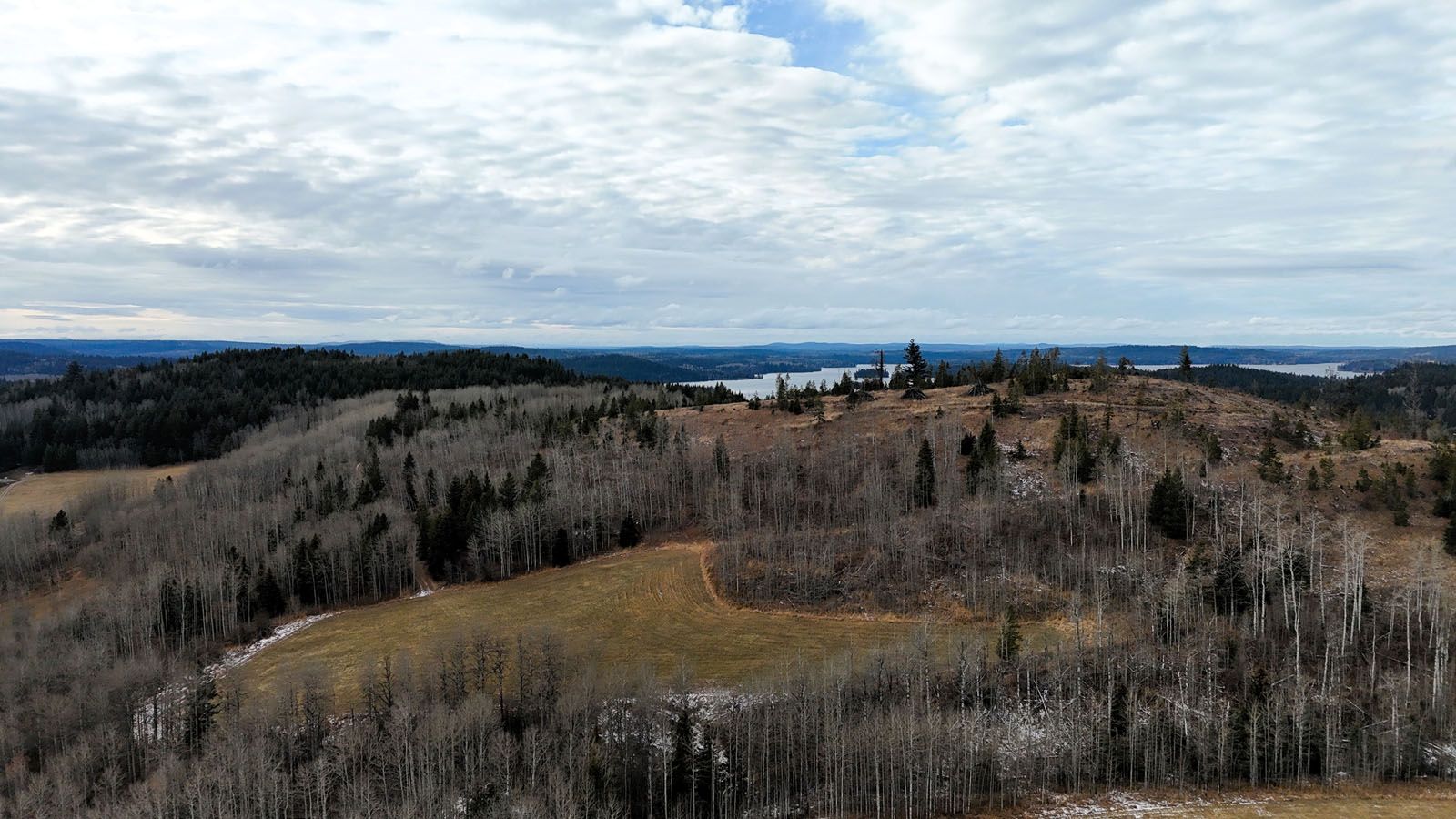 Quality view acreage overlooking Bridge Lake. This 66.47-acre property has 3 separate hay fields with 11+ acres of hay land. The hay fields are separated by a mixed forest, but an internal road connects the 3 fields.