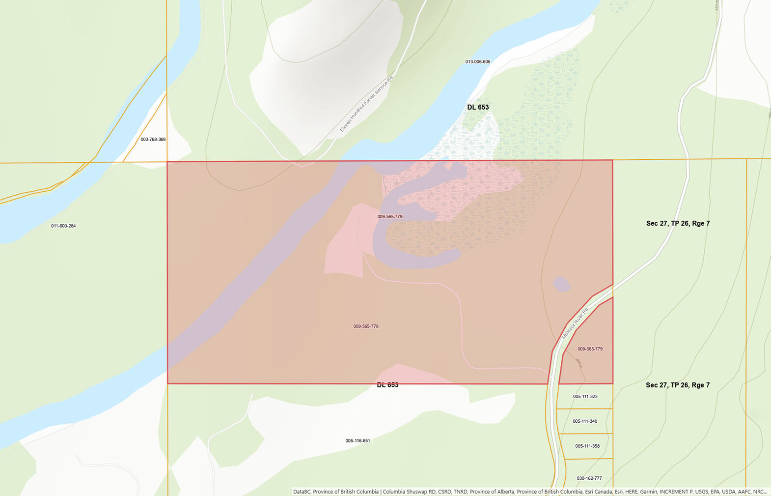 Now offering an extraordinary opportunity to own the ultimate self-sufficient back to nature riverfront estate. This totally private retreat on 78 acres is located along the stunning Seymour River at the northern tip of Shuswap Lake. The acreage backs onto Crown land on both the north and east sides of the property, with almost unlimited logging roads and ATV trails to explore with a truck, ATV, snowmobile or simply hiking to one of the multiple picturesque backcountry locations this area is known for. This area is a true outdoor recreational playground. Well-treed with mature timber, you can bring a portable saw mill to the property and have enough lumber onsite for any project you might have in mind. The property is bisected by the Seymour River with 13.5 acres of undeveloped forested acreage on the far side of the river with its own access off Celista-Seymour FSR. The property has no zoning, however much of the property is located within the ALR. The non-ALR portion of the property is open to a wide variety of possible uses. Contact the listing agent for a map showing which areas are within the ALR and which areas are not.