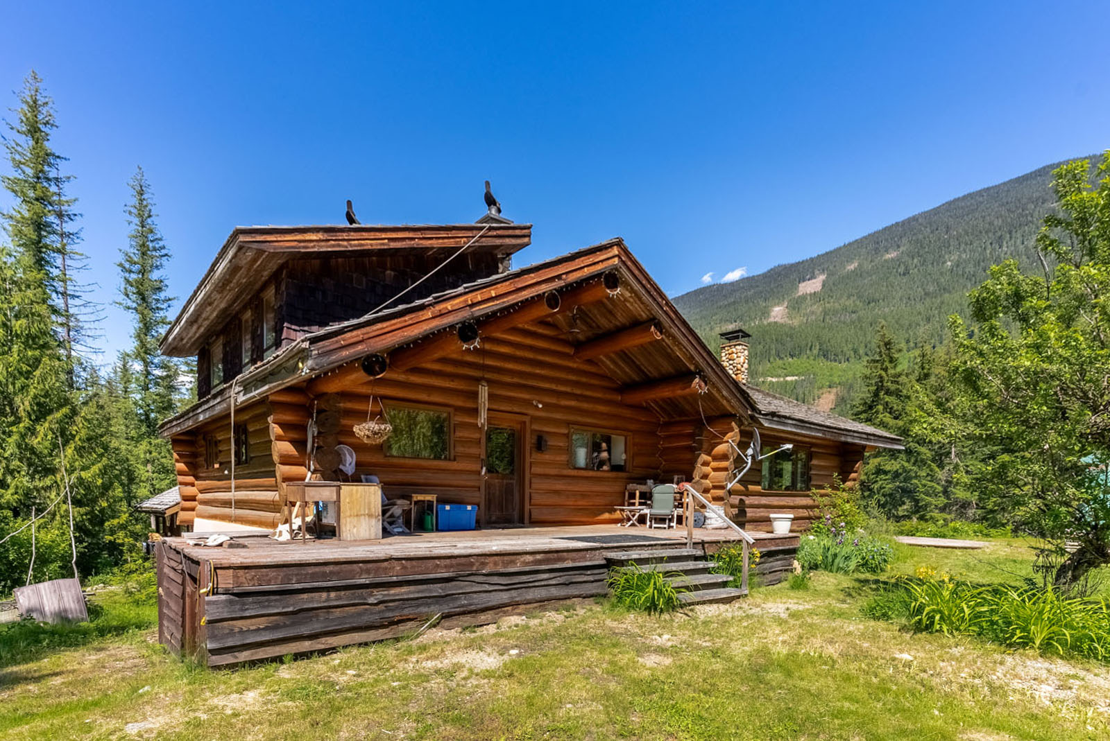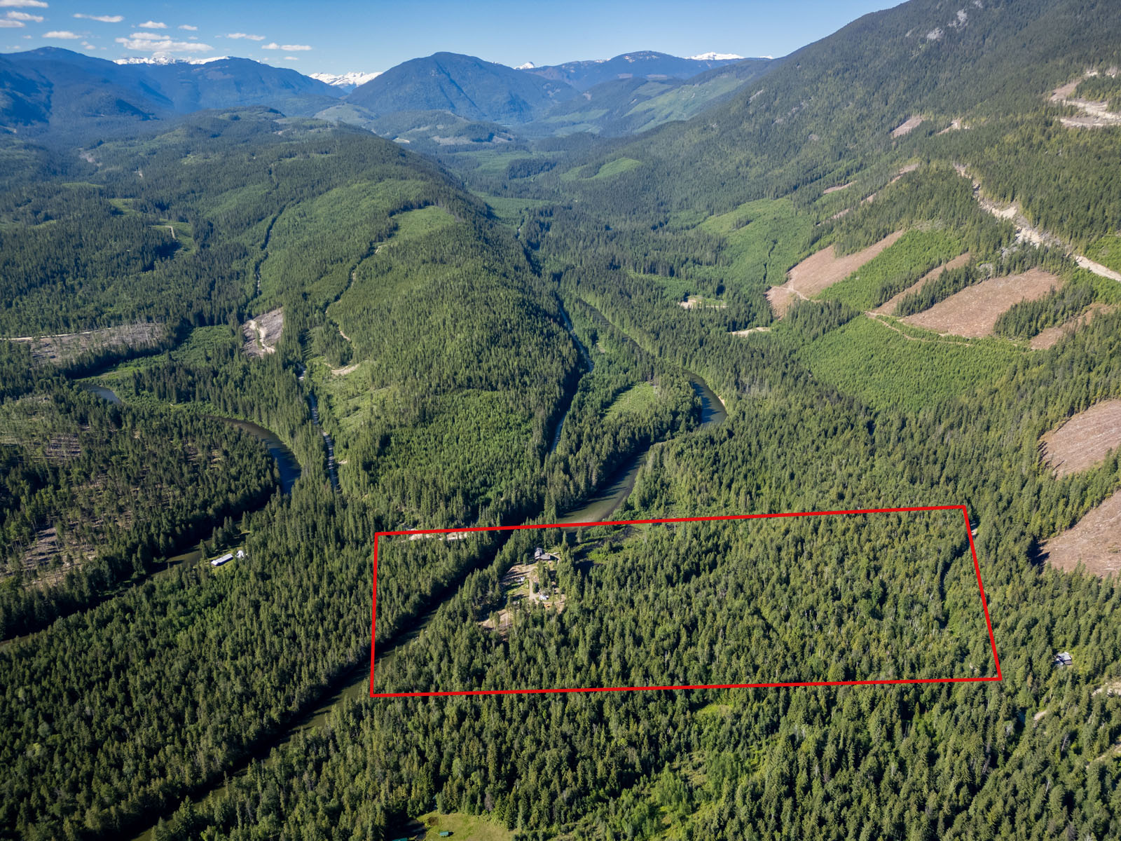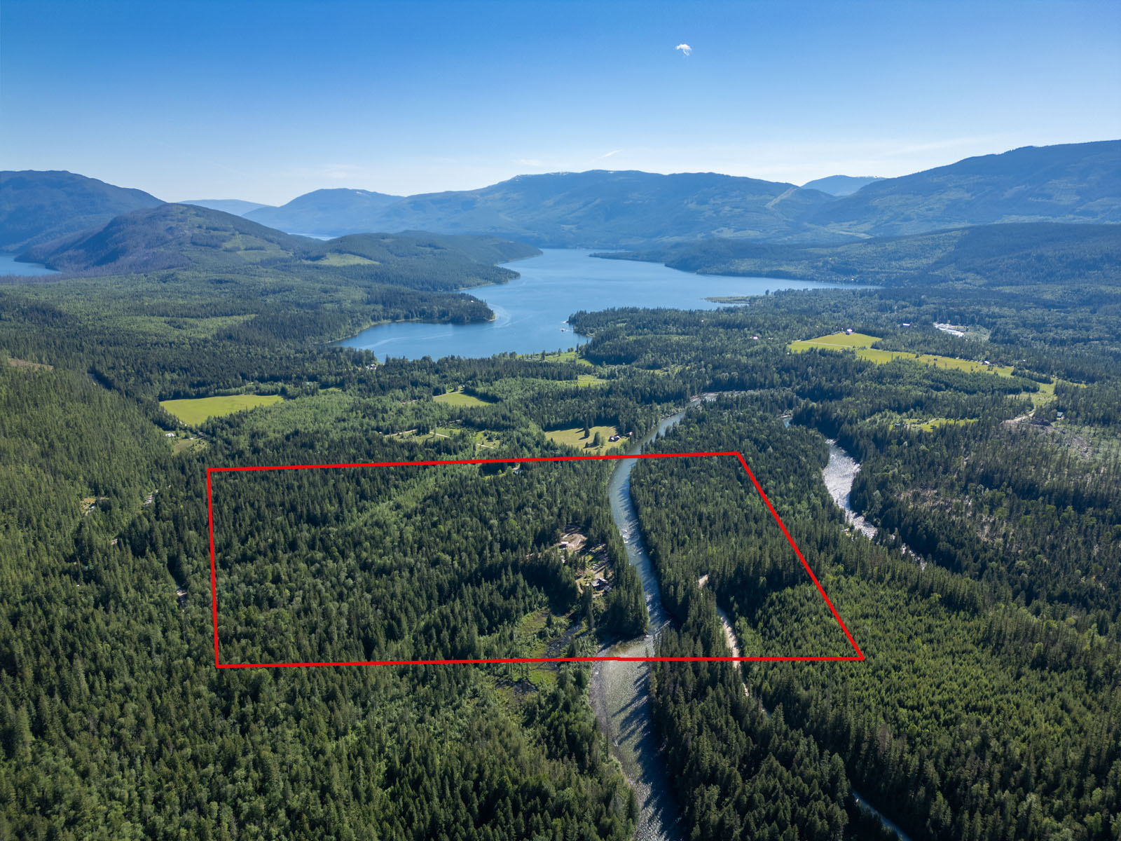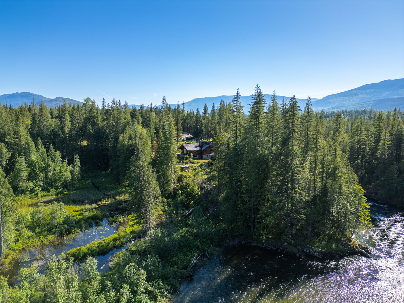 78 acres along the Seymour River at north tip of Shuswap Lake. Backs on Crown land. Well treed with mature timber. Self-sustaining with electricity, phone, Internet, and satellite TV. Gravity-fed water system. Log home, guest cabin, cozy riverside cabin, greenhouse, and outbuildings.