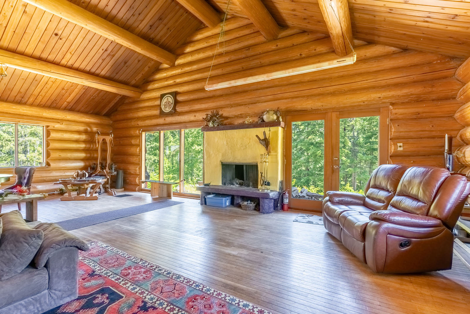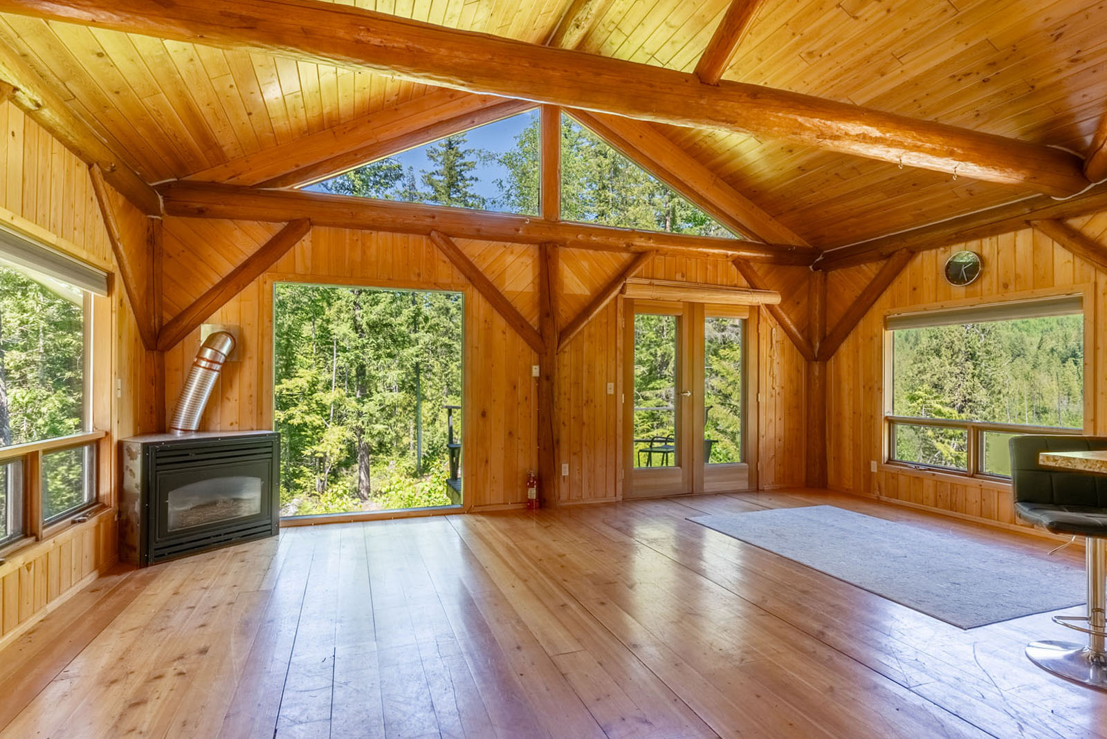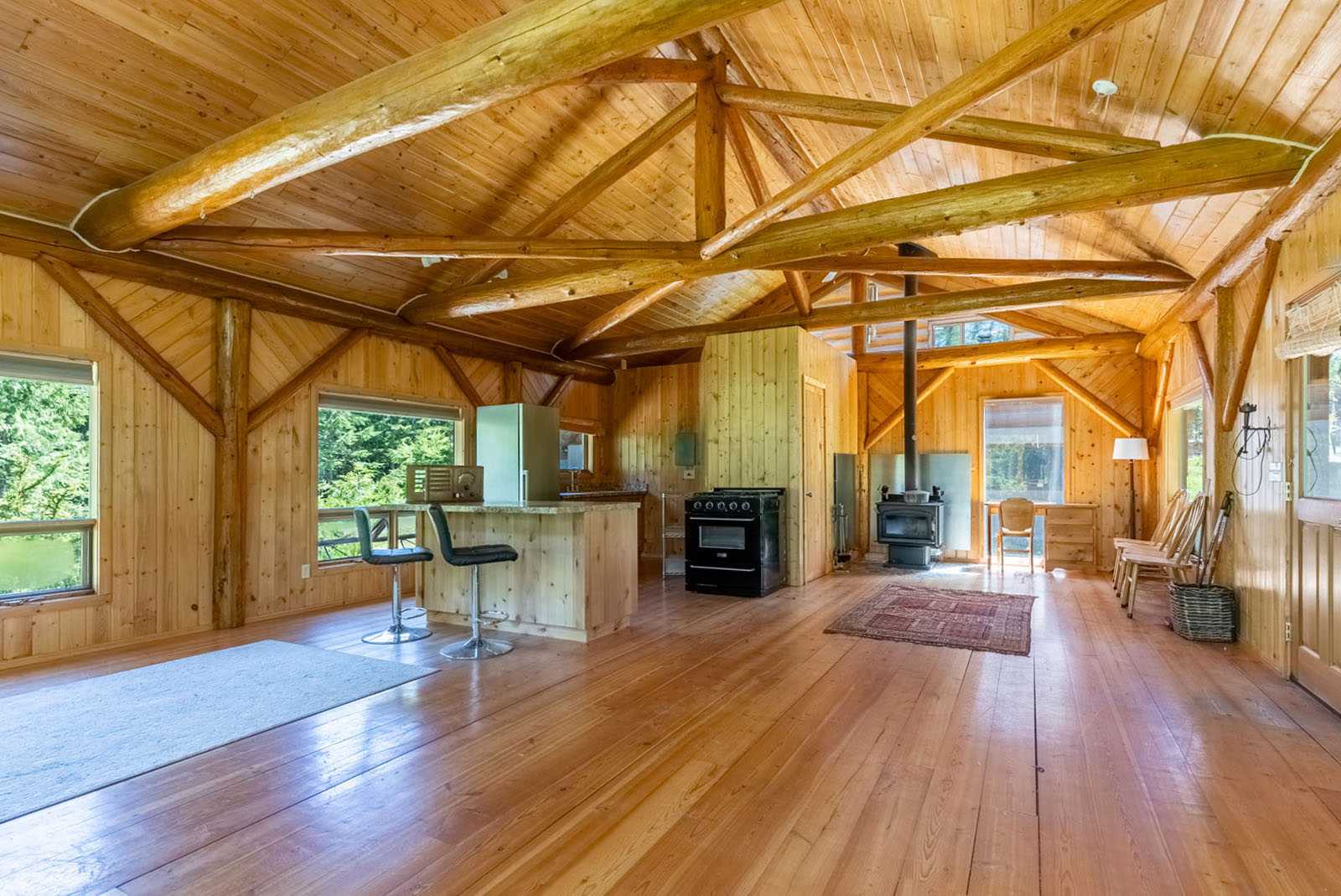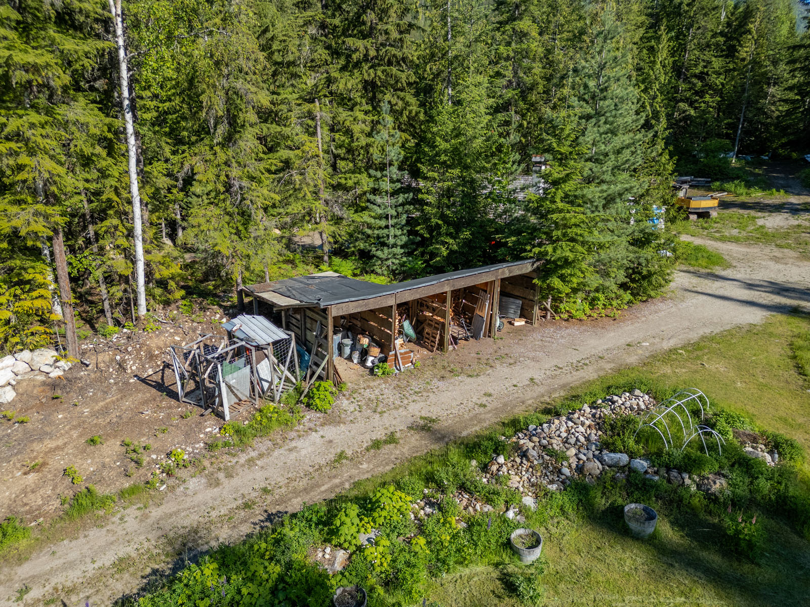 Rustic charm meets modern convenience in this self-sustaining getaway, fully serviced with off-grid power system, phone, Internet, and satellite TV. A gravity-fed water system sourced from a nearby creek and a combination of solar power and a Pelton wheel ensure reliable, off-grid living, free from utility bills and full of peace of mind. At the heart of the property sits a warm and inviting log home, complemented by a cozy riverside 25' x 35' guest cabin, greenhouse, a small unfinished creek side cabin and a variety of outbuildings—ideal for hosting large gatherings, group ownership, or creating a spa or wilderness resort. With breathtaking river views from the deck, every corner of the property invites rest, reflection, and connection to nature. Steward Creek also bisects the property on the east side of Seymour River, terminating in a wetland below the house and main infrastructure area.