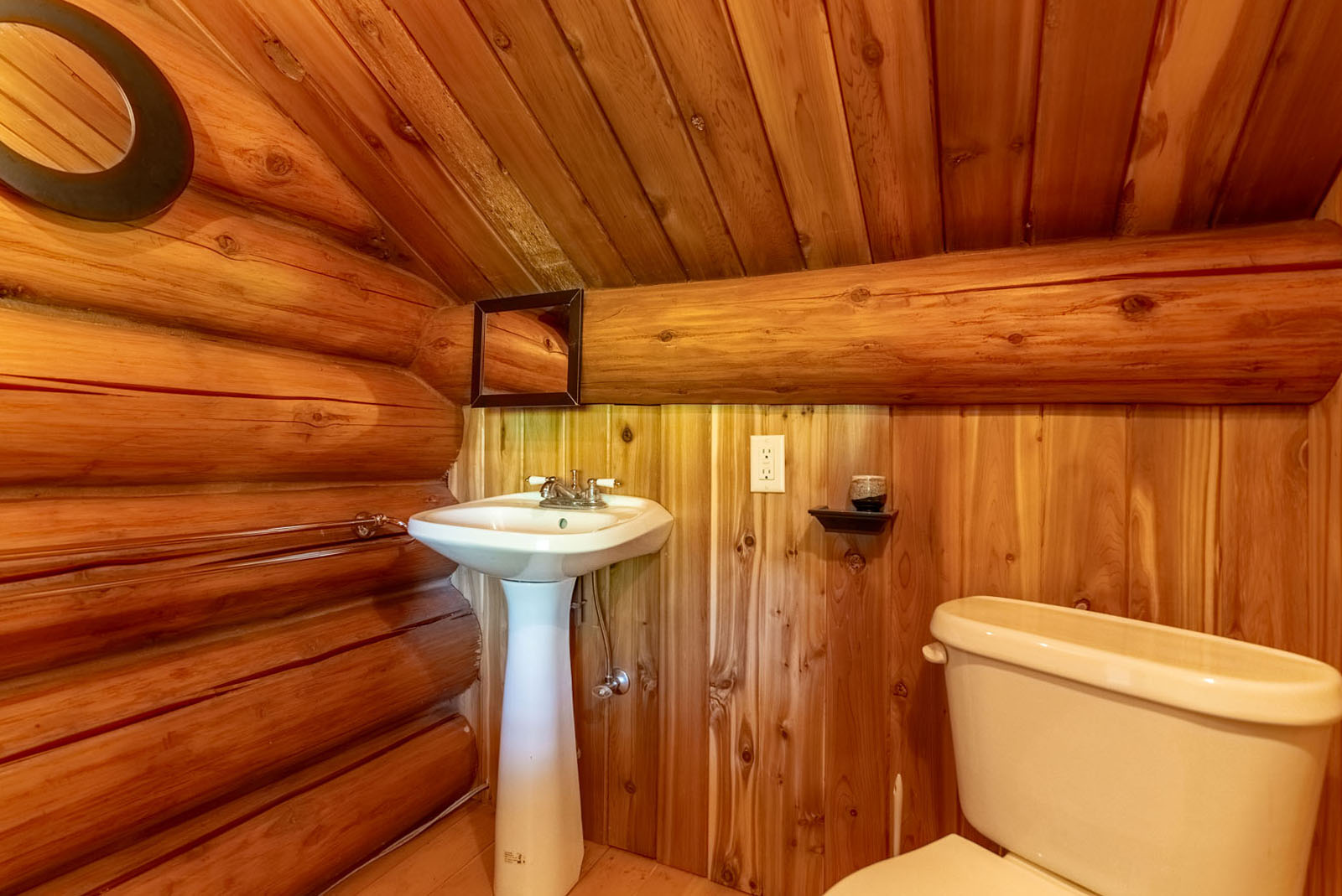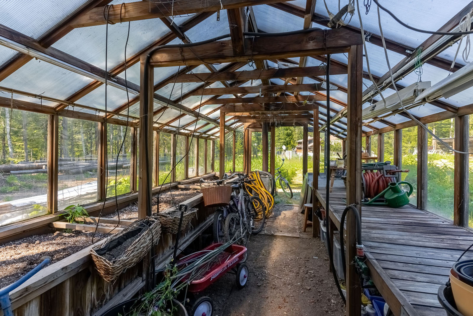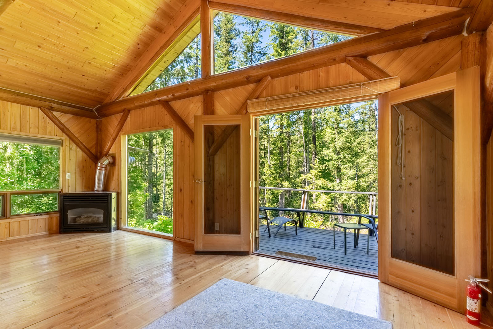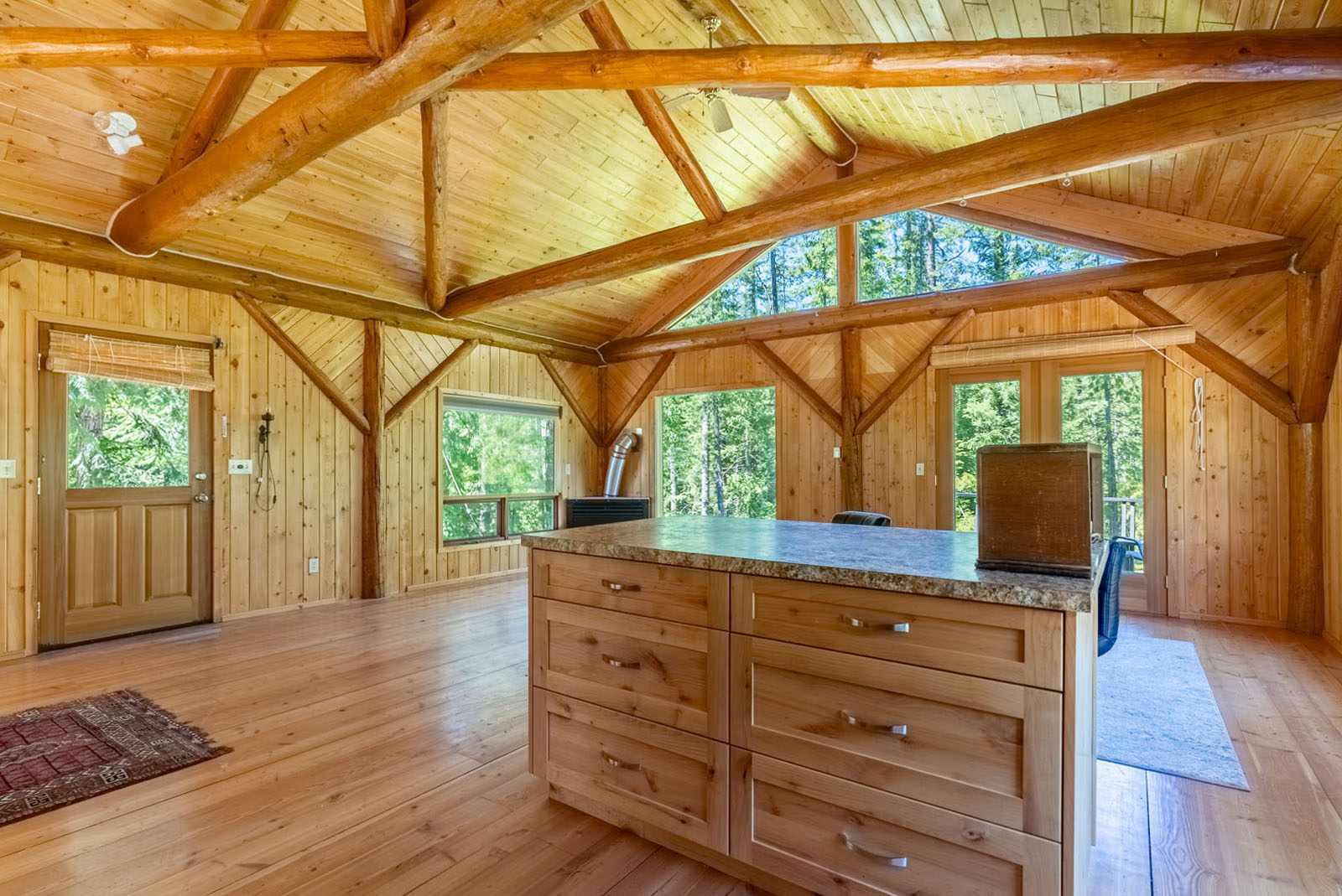 Rustic charm meets modern convenience in this self-sustaining getaway, fully serviced with off-grid power system, phone, Internet, and satellite TV. A gravity-fed water system sourced from a nearby creek and a combination of solar power and a Pelton wheel ensure reliable, off-grid living, free from utility bills and full of peace of mind. At the heart of the property sits a warm and inviting log home, complemented by a cozy riverside 25' x 35' guest cabin, greenhouse, a small unfinished creek side cabin and a variety of outbuildings—ideal for hosting large gatherings, group ownership, or creating a spa or wilderness resort. With breathtaking river views from the deck, every corner of the property invites rest, reflection, and connection to nature. Steward Creek also bisects the property on the east side of Seymour River, terminating in a wetland below the house and main infrastructure area.