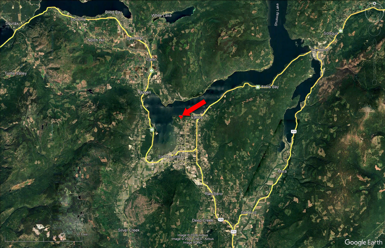 Scenic lake view acreage just steps above Captains Cove Marina in Salmon Arm, overlooking the sparkling waters of Shuswap Lake.