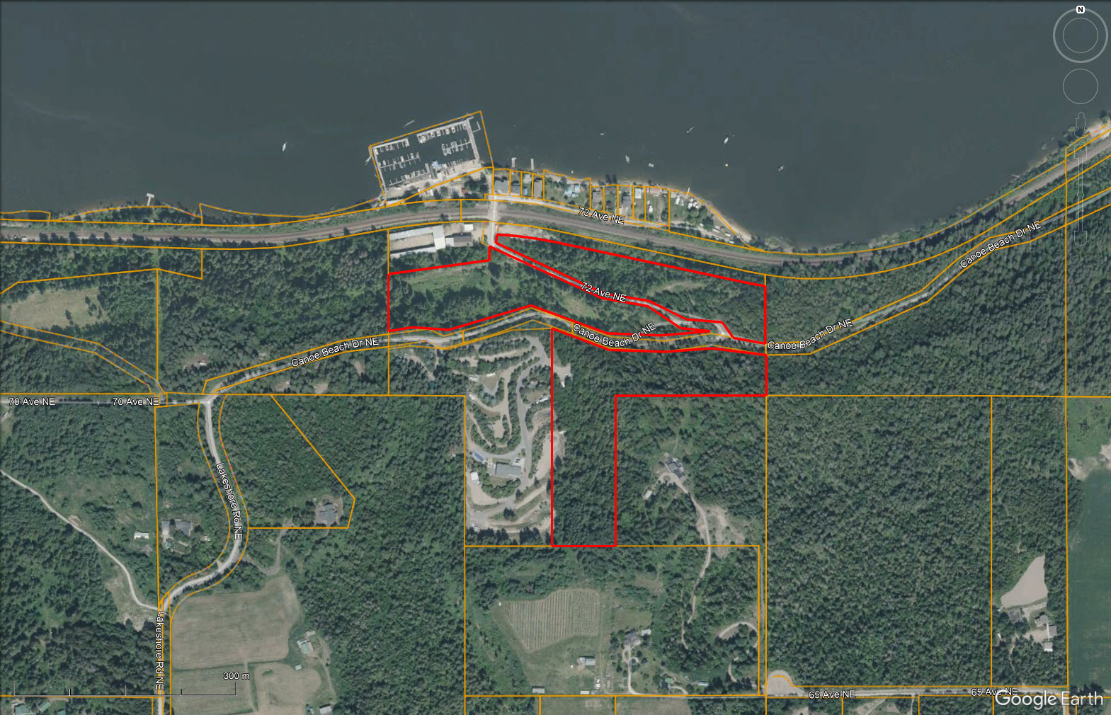 This diverse 18.6-acre property is naturally divided by 72nd Avenue and Canoe Beach Drive NE into three distinct sections, each offering its own character and multiple potential building sites. Power is conveniently available along Canoe Beach Drive and runs through the property toward 72nd Avenue, providing straightforward connection options.