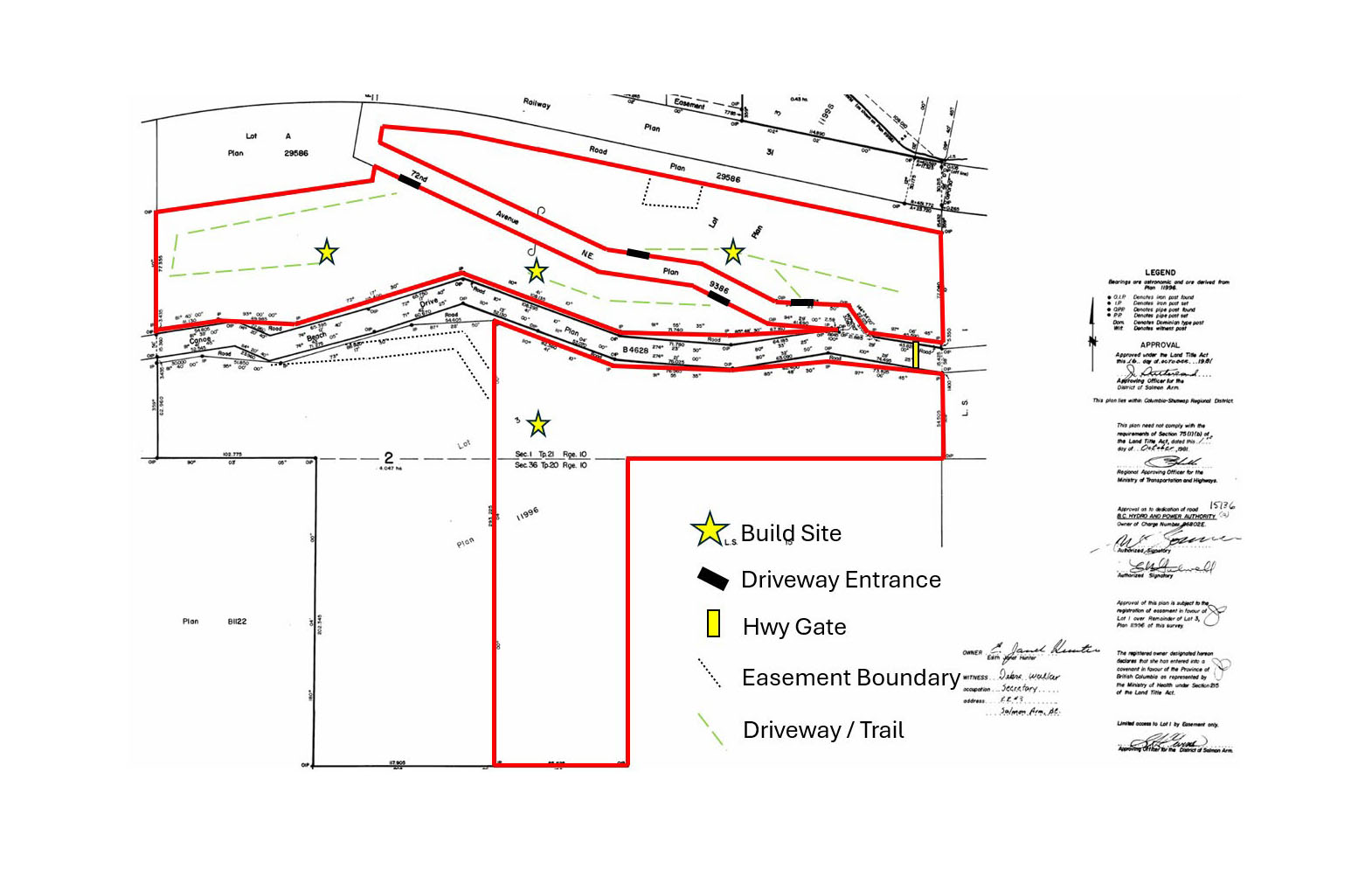 While current zoning does not permit subdivision, there may be potential to explore rezoning. The Ministry of Transportation and Infrastructure has generally been supportive of subdivisions where parcels are “hooked” (where title crosses a roadway). Refer to maps and aerial images for a clear understanding of the layout.