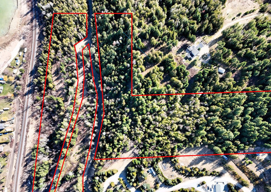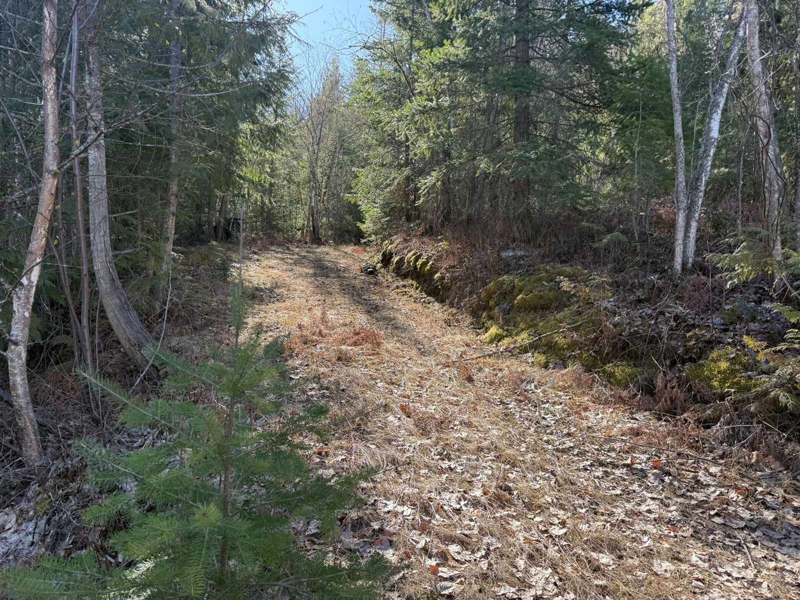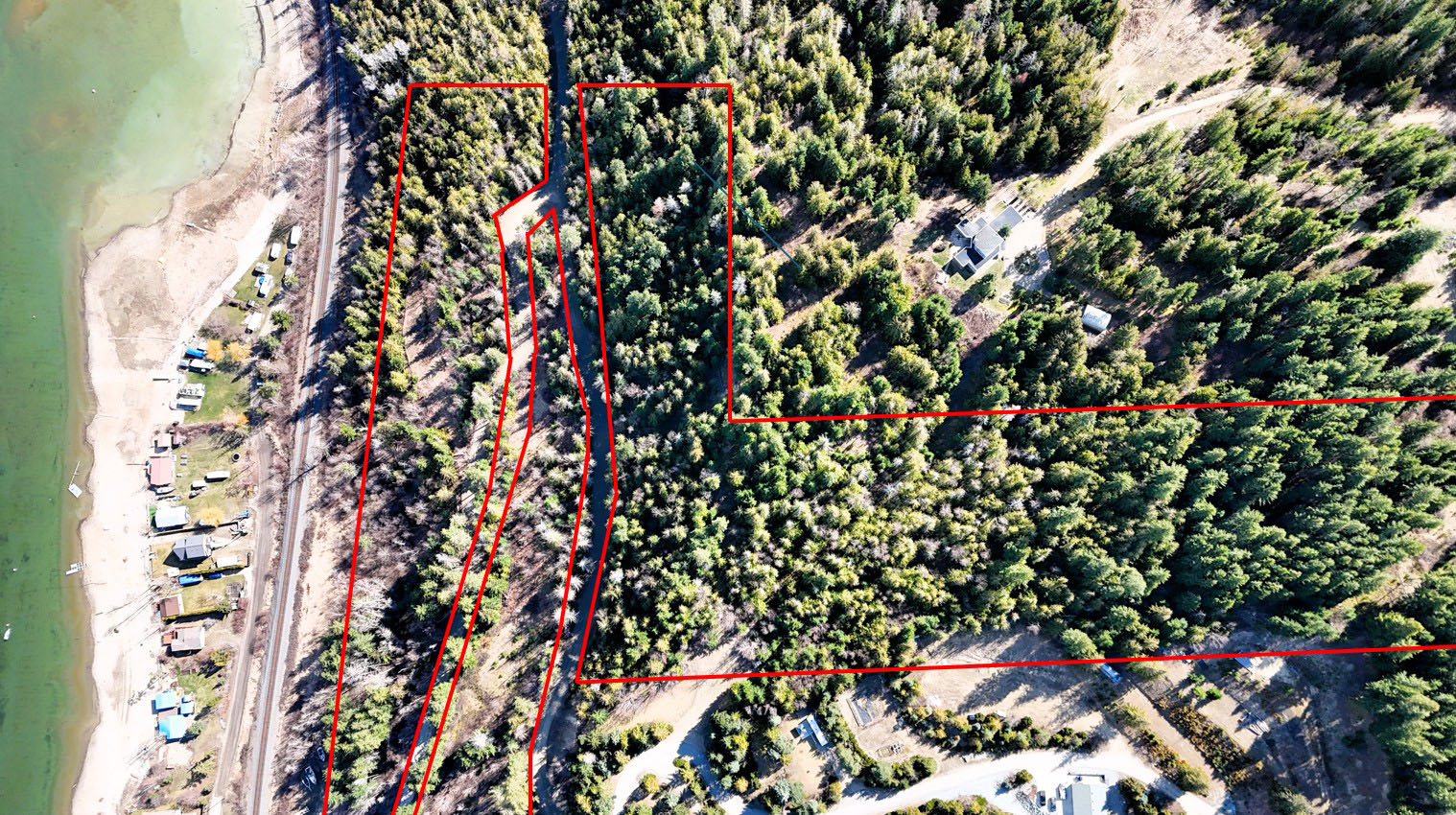 The lower section, located below 72nd Avenue, spans approximately 4.3 acres and is primarily forested. Two established driveway access points lead to a flat, cleared bench with beautiful lake views and a scenic forested area to the east—an excellent building location.
