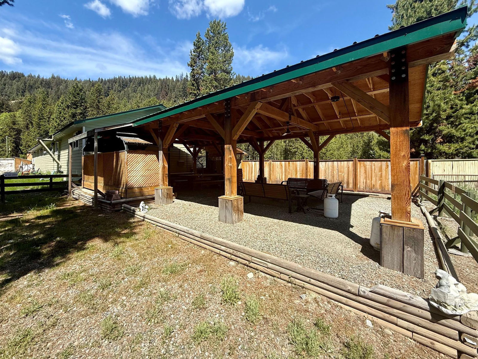 The owner’s residence offers a 1-bedroom, 1-bathroom layout with full kitchen, laundry, and a spacious living area, plus a private outdoor space with firepit and BBQ. Two sea cans provide secure storage. The property is fully Wi-Fi-enabled with remote control of security system with cameras, electronic locks, lighting, hot water, and power systems. Backup power is supplied by a propane Generac generator. Water is via an on-site shallow well, piped below grade to the crawlspace, with septic tank and field in place.