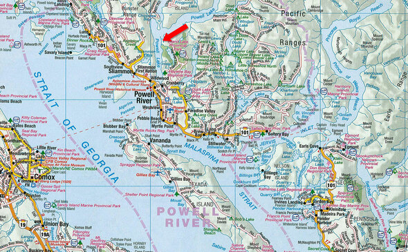 Powell River is located on the coast of British Columbia approximately 145 km (90 miles) north of Vancouver and immediately across from Courtenay on Vancouver Island.