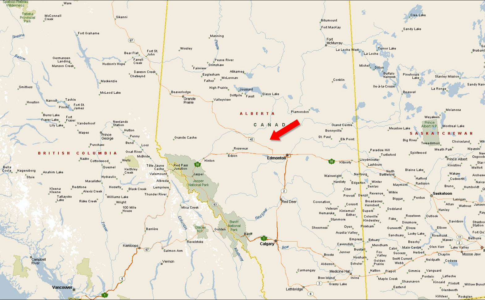54°10'59.11"N and 114°45'29.73"W