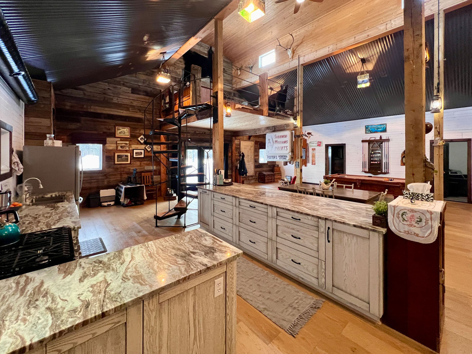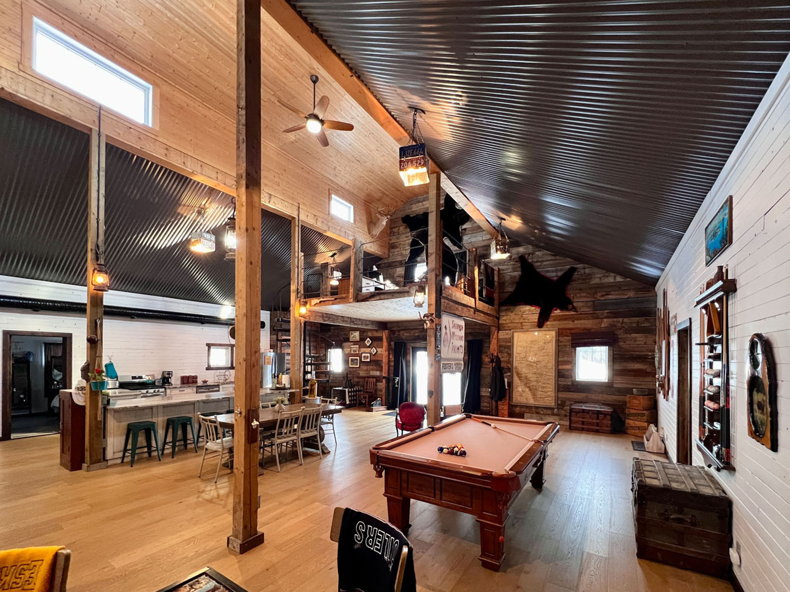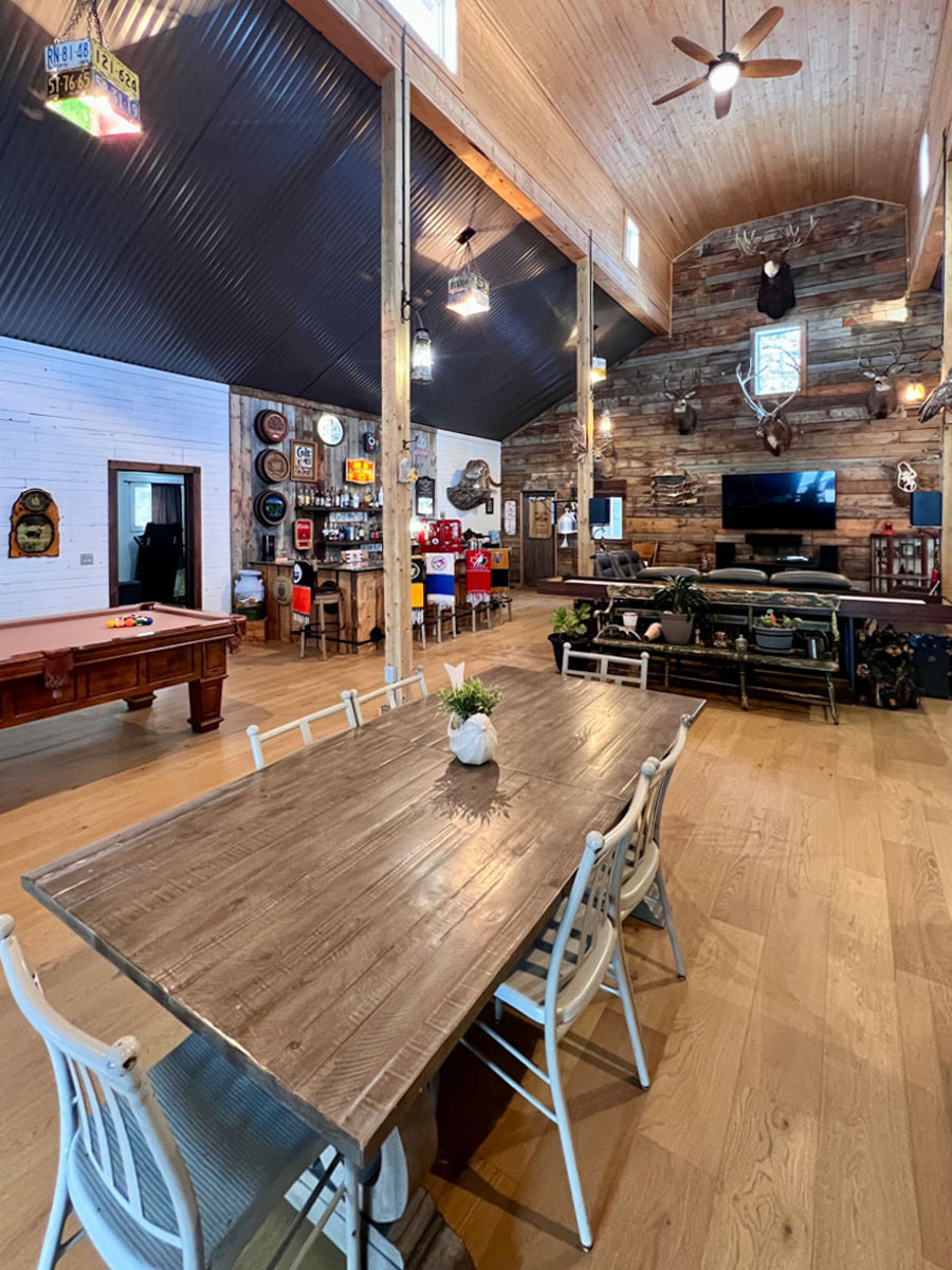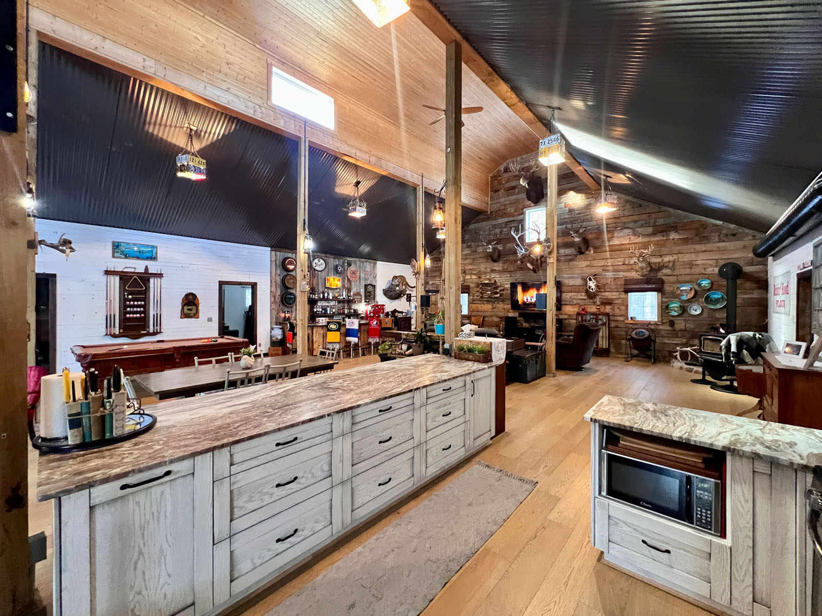 This is an undeniably unique and attractive barndominium property offering space, infrastructure, and atmosphere in equal measure. All mounts are excluded from the sale; other décor items may be negotiable.