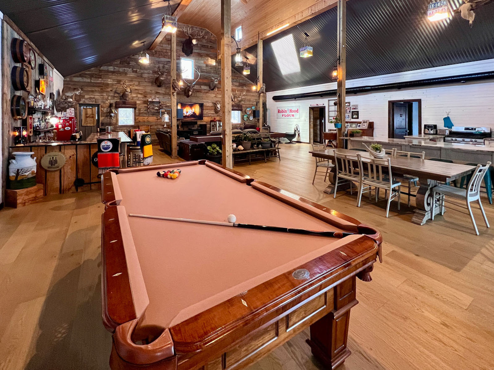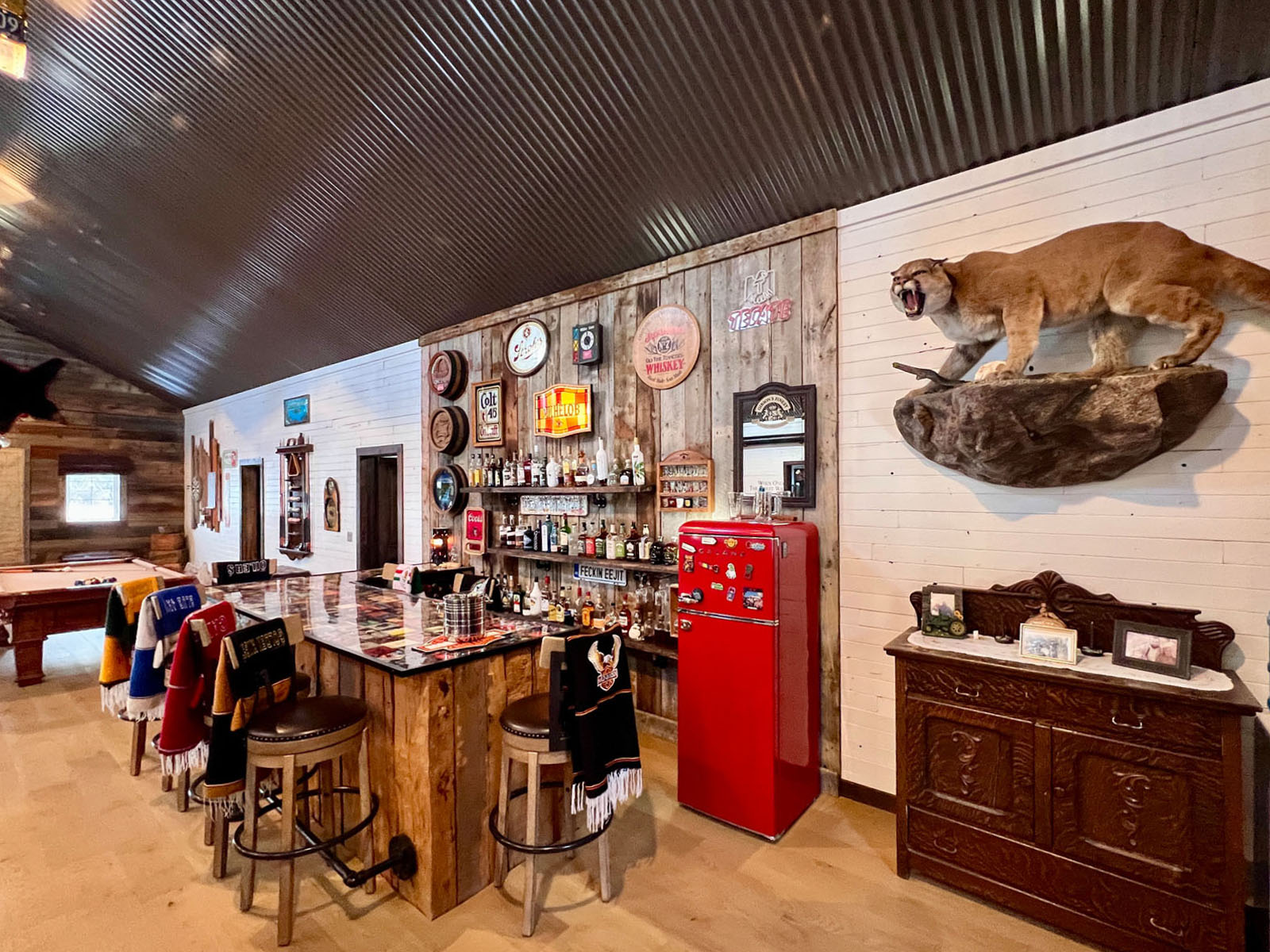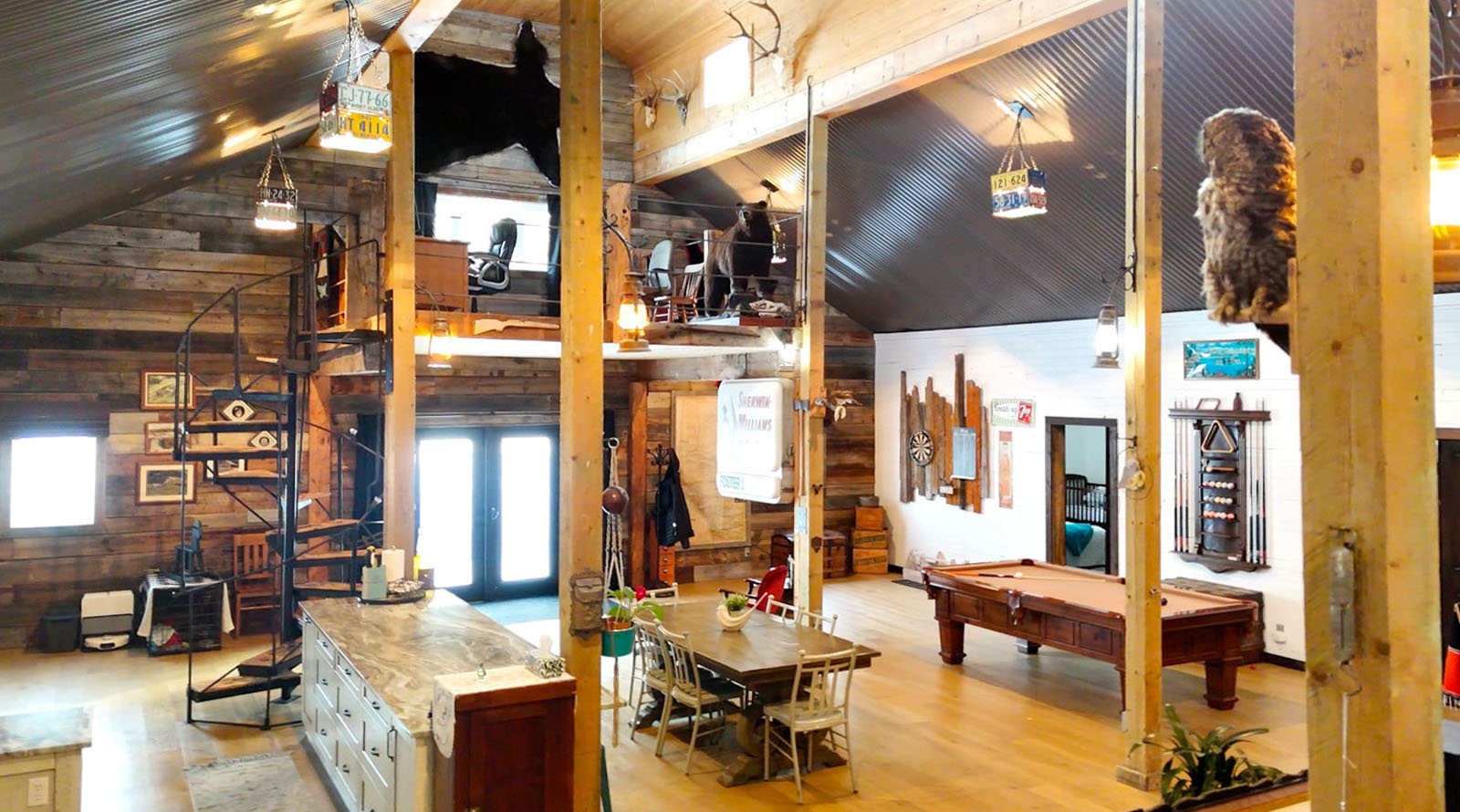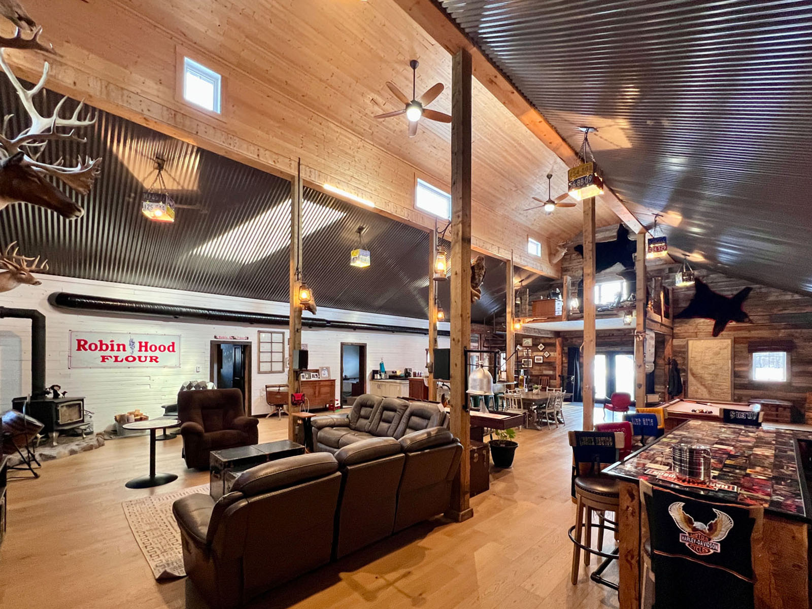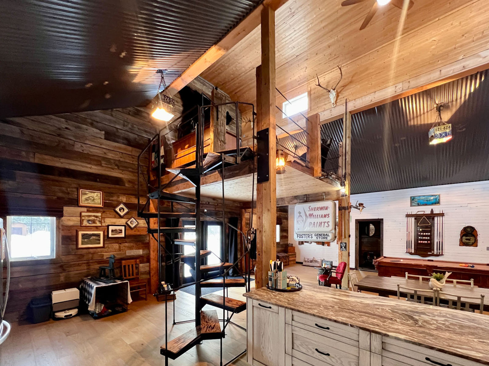 This is an undeniably unique and attractive barndominium property offering space, infrastructure, and atmosphere in equal measure. All mounts are excluded from the sale; other décor items may be negotiable.