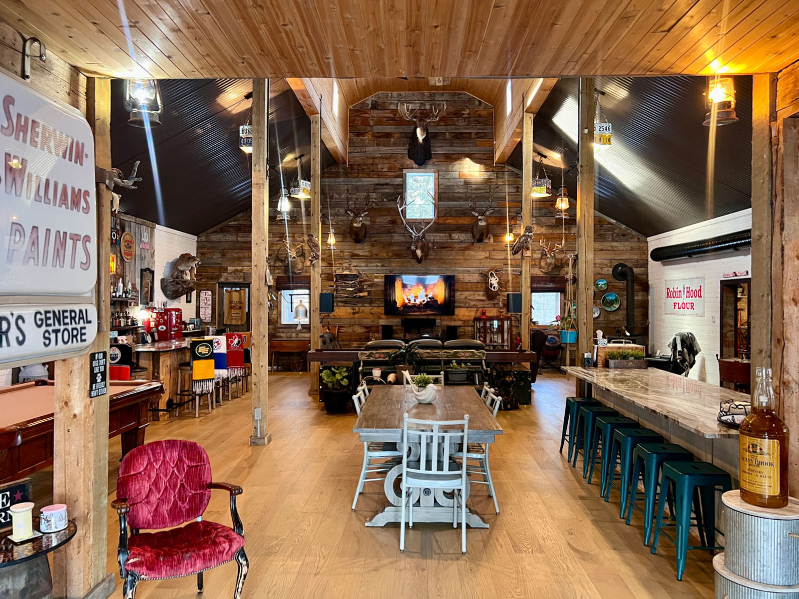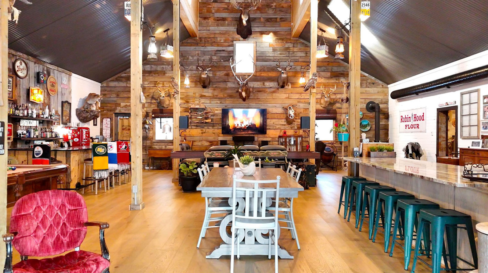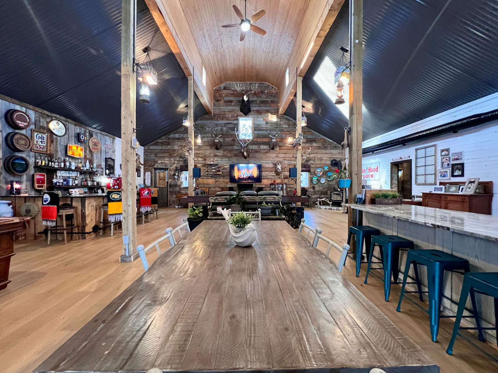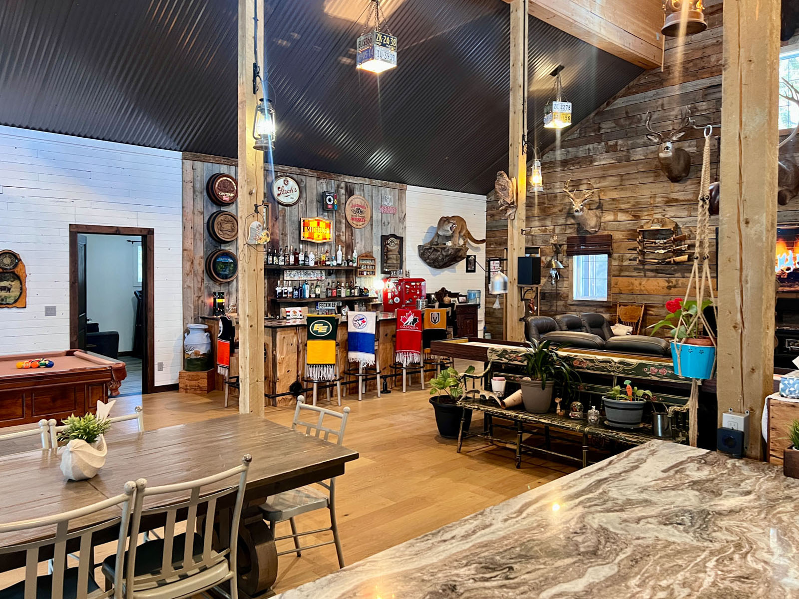 This is an undeniably unique and attractive barndominium property offering space, infrastructure, and atmosphere in equal measure. All mounts are excluded from the sale; other décor items may be negotiable.