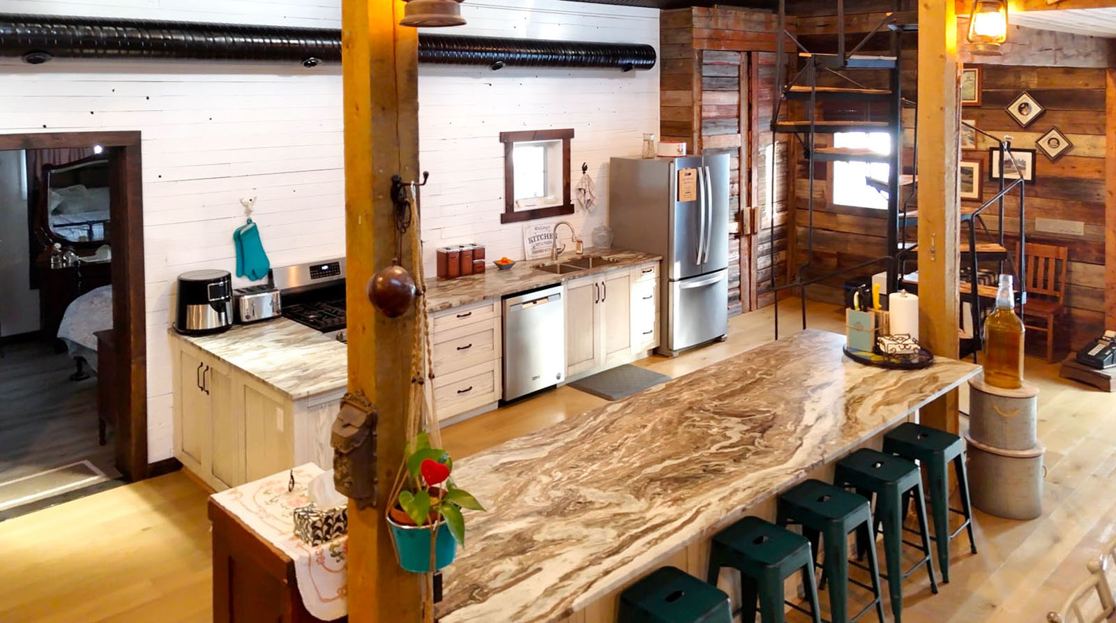 Amazing property, home, and atmosphere—this one-of-a-kind barndominium-style rural estate offers an exceptional blend of modern comfort, vintage character, and full-scale country functionality. Built in 2017 with a thoughtfully designed south addition completed in 2022, the residence is set within a beautifully established, tree-sheltered yard site that provides privacy, warmth, and a true sense of arrival. From the moment you step inside, the space reveals a distinctive ambiance where curated décor, custom finishes, and rustic-industrial elements combine to create an environment that must be seen and felt in person.