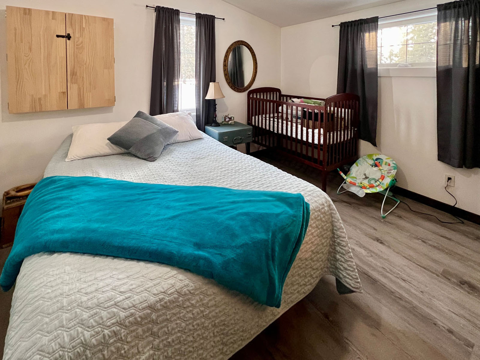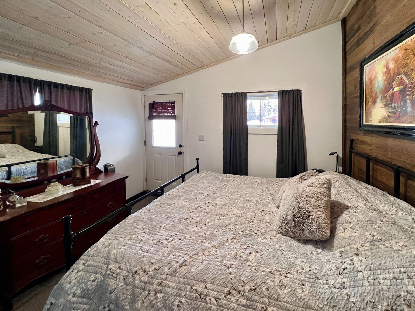 The barndominium features four bedrooms and two bathrooms and is built on a concrete slab foundation, offering durable, efficient living. A metal roof installed in 2022 and board-and-batten metal exterior siding updated in 2025 ensure longevity and low maintenance. Interior spaces are bright and welcoming, anchored by a high-ceiling great room with a wood-burning fireplace that adds both warmth and character. Custom kitchen cabinetry, excellent storage throughout, and practical main-floor living make the home well suited for all stages of life, while the thoughtful blend of modern design and vintage flair gives the home a personality rarely found in rural properties.