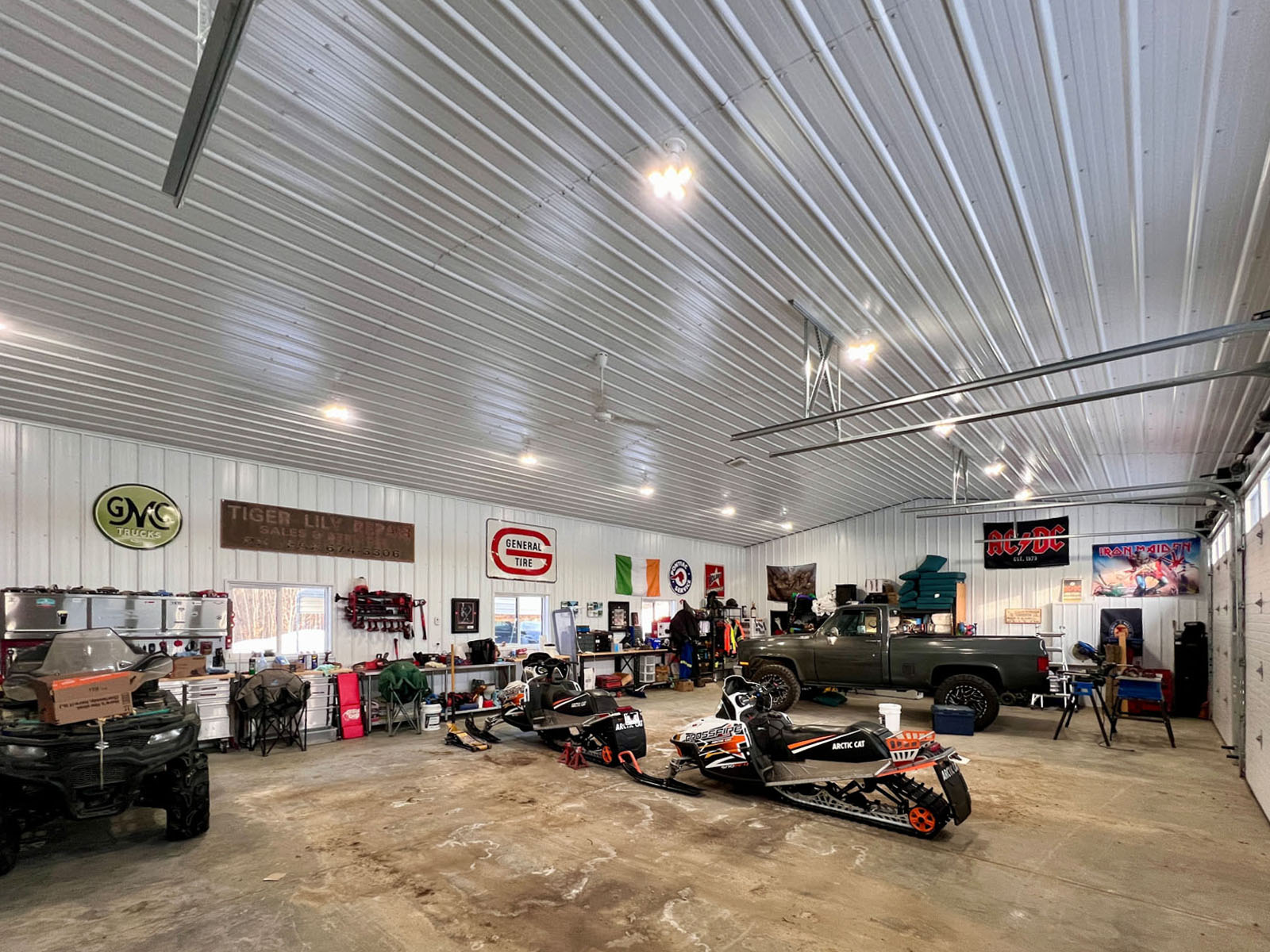 The yard site is exceptionally well developed and anchored by a large 50' x 36' wood-frame shop equipped with in-floor heat, three overhead doors, and three-phase 100-amp power, making it ideal for equipment storage, mechanical work, or business use. Covered storage is located behind the shop, and a separate free-standing two-bay garage with natural gas heat offers additional flexibility. Further improvements include a large machine shed with attached woodshed, enclosed powered storage, an enclosed powered hunting shack, and four-bay grain storage, providing outstanding capacity for agricultural, recreational, or rural business operations.