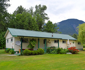 3 bdrm, 2 bath manufactured home with a large edition on a beautifully landscaped, riverfront property. Well-established fruit trees a large, fenced garden & amazing mountain views. Very quiet location, walking distance to all services & the government wharf.