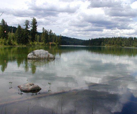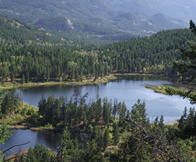 This two title 77 acre property surrounds a private lake about 30 acres in size. The land it mostly treed with great views all around. Wildlife is abundant as well as rainbow trout and kokanee salmon visiting the lake. A quaint and rustic cabin overlooks the lake.
