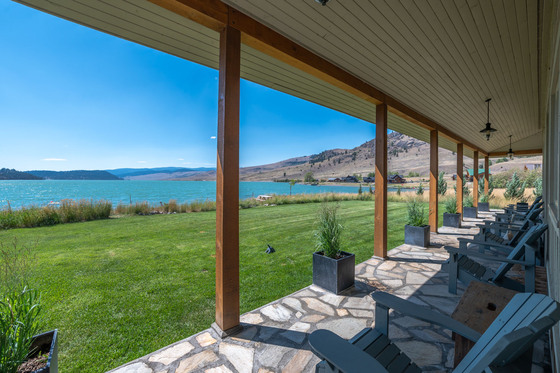 Lakefront living at it’s finest. Professionally designed 2,400 ft2 rancher with courtyard finished with stone floors, exposed timber framing & wood burning fireplace. Swimming pool. High-end Viking appliances. Private guest house. 3 car garage/workshop. 3 hours to Vancouver.