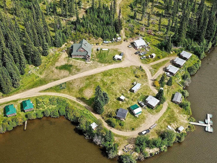 A marvelous fishing resort situated on the rich fishing grounds of Tranquille Lake. This stunning property features a trophy 3,100 ft2 lodge, 9 guest cabins, workshop, communal bathroom facilities, generator shed, dock system & more. Approximately 49 km from outskirts Kamloops.