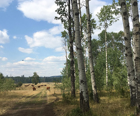 Large creekfront acreage 20 mins east of Burns Lake. 281 acres in 2 titles, mixture of forested areas, hayfields, pastureland & lowland river bottom. Approx. 200 - 210 acres are flat. Irrigation water licence. Outbuildings, septic system, power & a shallow well.